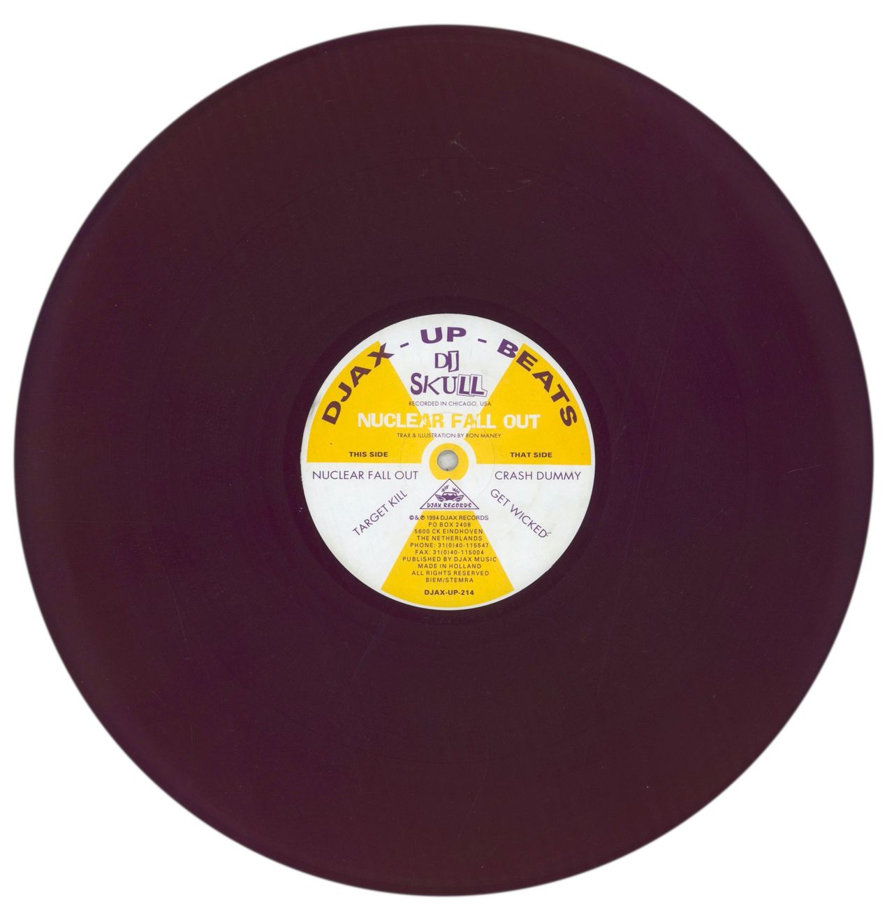 DJ SKULL Nuclear Fall Out (1994 Dutch limited edition 4-track 12" EP pressed on Purple Vinyl, die-cut sleeve. Great EP of raw, percussive acid trax from the Chicago native. The vinyl is Excellent with lightplay only DJAX-UP-214)