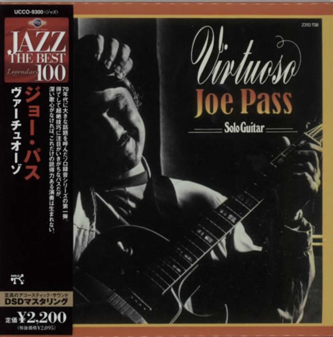 JOE PASS Virtuoso (2010 Japanese 12-track CD album, housed in a vinyl replica flat card picture sleeve, with obi-strip. Joe Pass was already a virtuoso before cutting a record whose title referred to him as such, but this 1974 solo guitar releaseelevated him to international star status UCCO-9300)