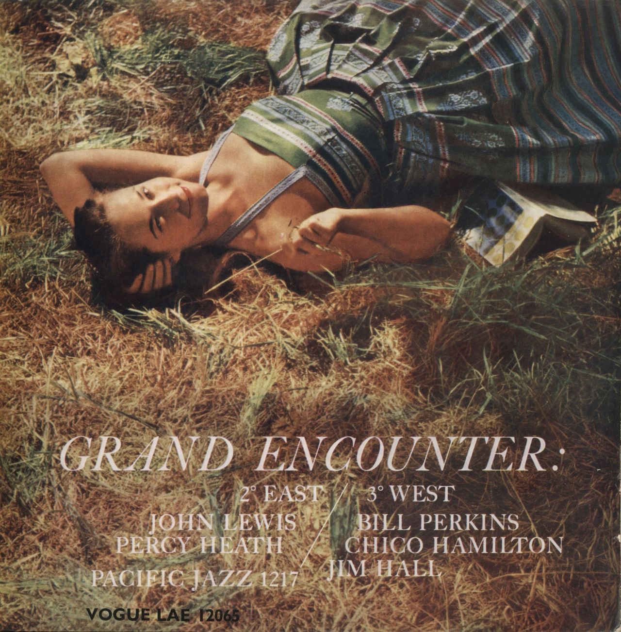 JOHN LEWIS & BILL PERKINS Grand Encounter - Two Degrees East, Three Degrees West (1957 UK 6-track mono LP, also featuring Percy Heath, Chico Hamilton & Jim Hall, hailed as the ultimate in 'Cool Jazz', fully laminated flipback picture sleeve. The flimsy sleeve is Excellent with a little minor shelf wear & the heavyweight vinyl is clean & in Excellent condition with few signs of play LAE12065)