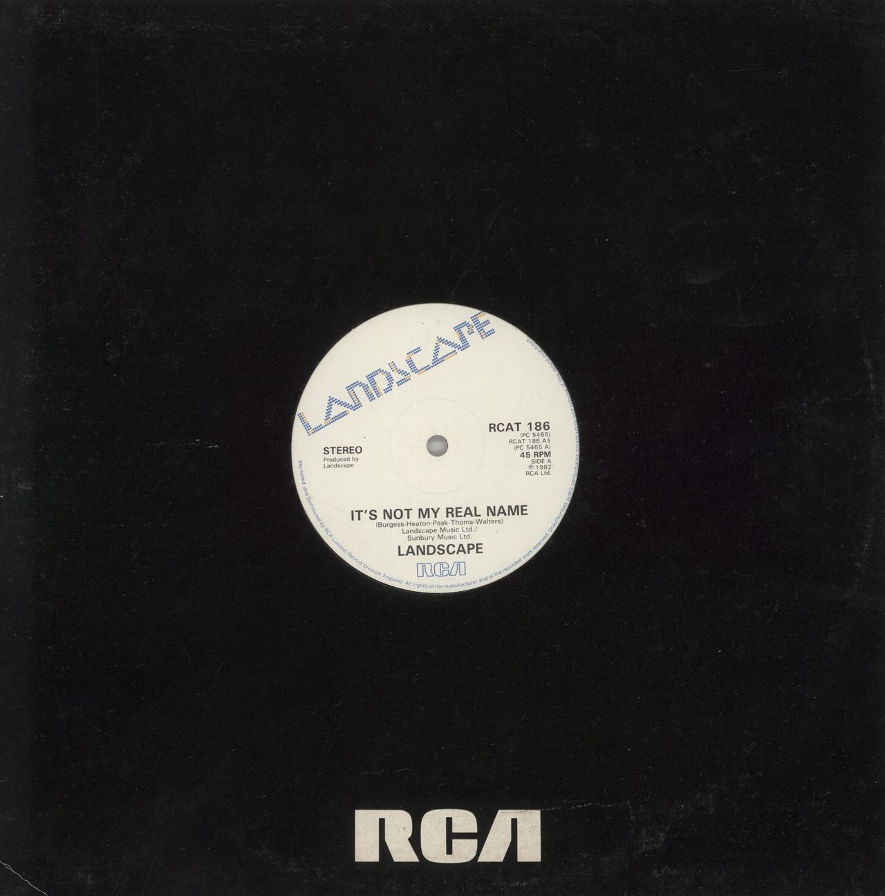 LANDSCAPE It's Not My Real Name (1982 UK 2-track 12" vinyl single, includes [A Case Of] Mistaken Identity, RCA company die-cut sleeve RCAT186)