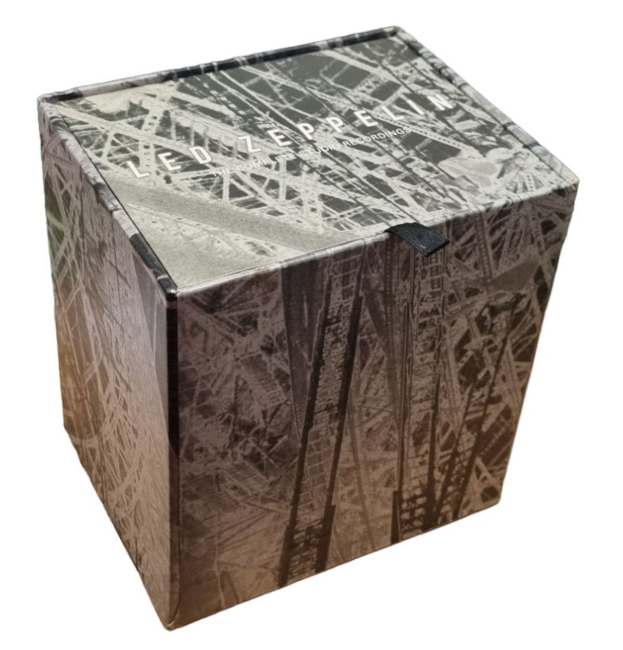 LED ZEPPELIN The Complete Studio Recordings (1993 US limited edition TEN CD box set featuring all nine studio albums as originally sequenced and digitally remastered by Jimmy Page & George Marino at Sterling Studio in New York, with four bonus tracks. The ten discs are paired up in five hardback book style digipak picture sleeves featuring the original album artwork inside together within an extensive booklet featuring details about the band with lots of great black and white and colour images, housed together in the 6" x 5.5" x 4.5" square picture box. The box displays just a little sun discolouration but the box and the contents remain in excellent condition with otherwise minimal sign of wear)