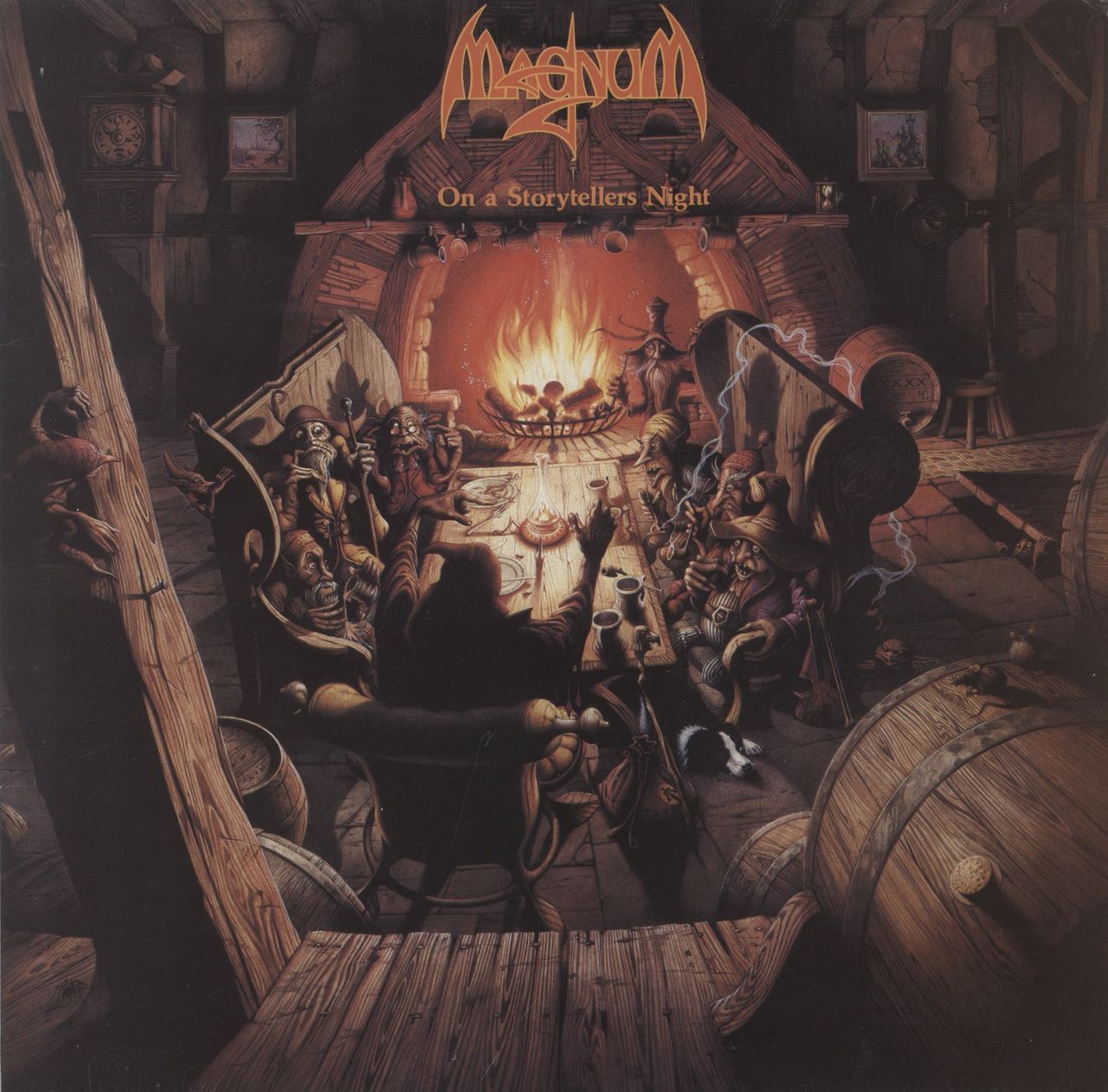 MAGNUM On A Storyteller's Night (1985 UK 10-track LP on the cream with black print FM label, the fifth album by the British melodic rock band, widely considered to be their breakthrough work. The picture sleeve sports a fantastic design by fantasy illustrator Rodney Matthews & the sleeve & vinyl remain in superb Excellent condition WKFMLP34)