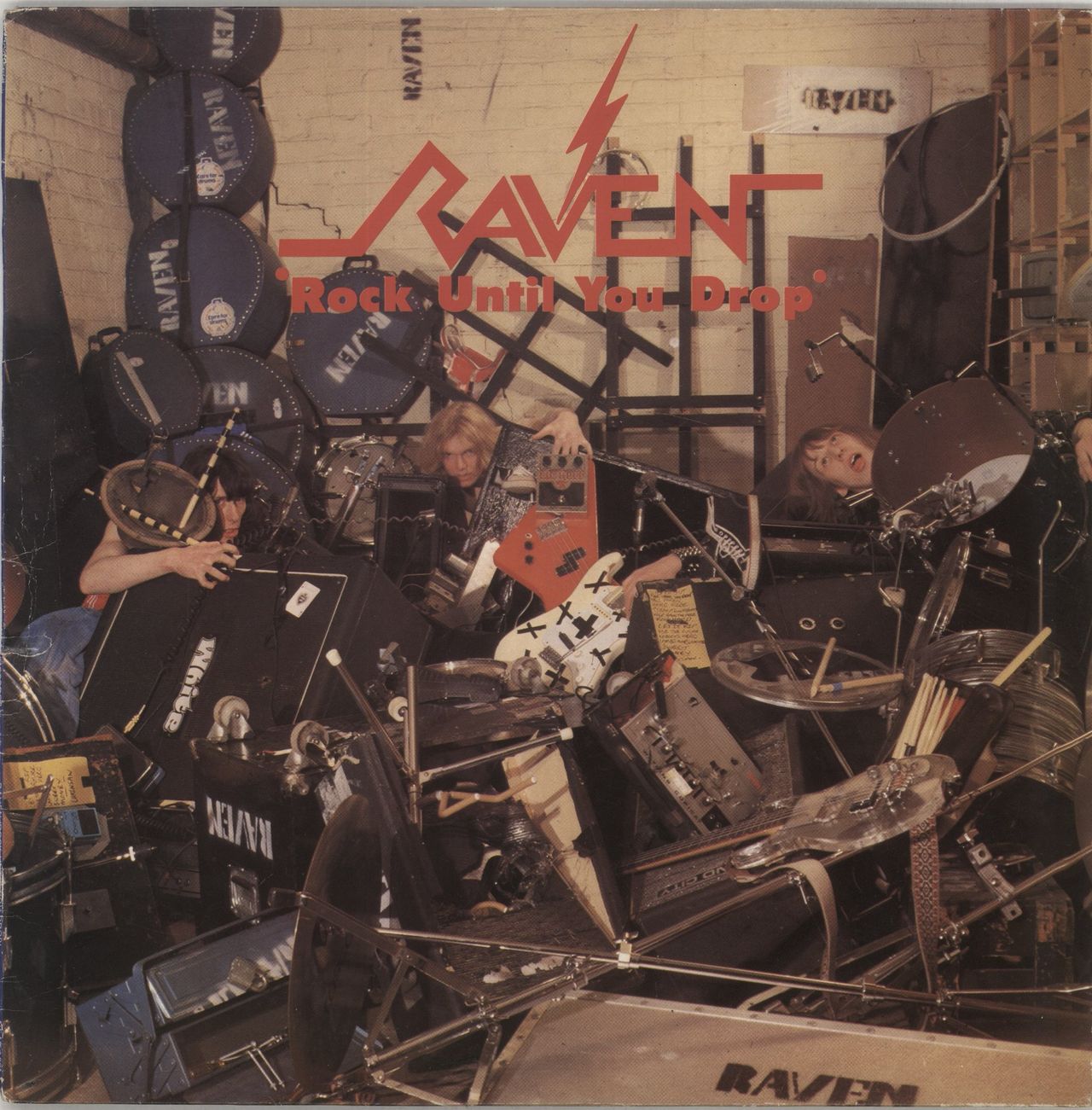 RAVEN Rock Until You Drop (1981 UK 11-track LP by the power-rock trio, picture sleeve. The sleeve shows notable edgewear and creasing, whilst the vinyl shows few signs of play, remaining in Excellent condition NEAT1001)
