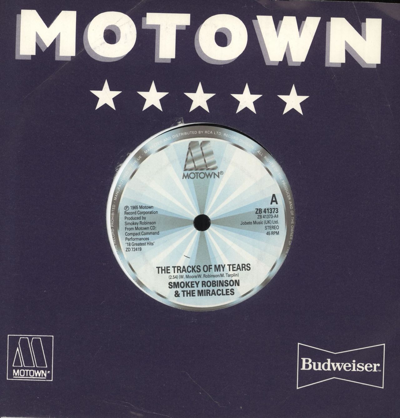 SMOKEY ROBINSON & THE MIRACLES The Tracks Of My Tears (80s UK solid centre 7" vinyl single, also including I Second That Emotion, Motown company die cut paper sleeve ZB41373)