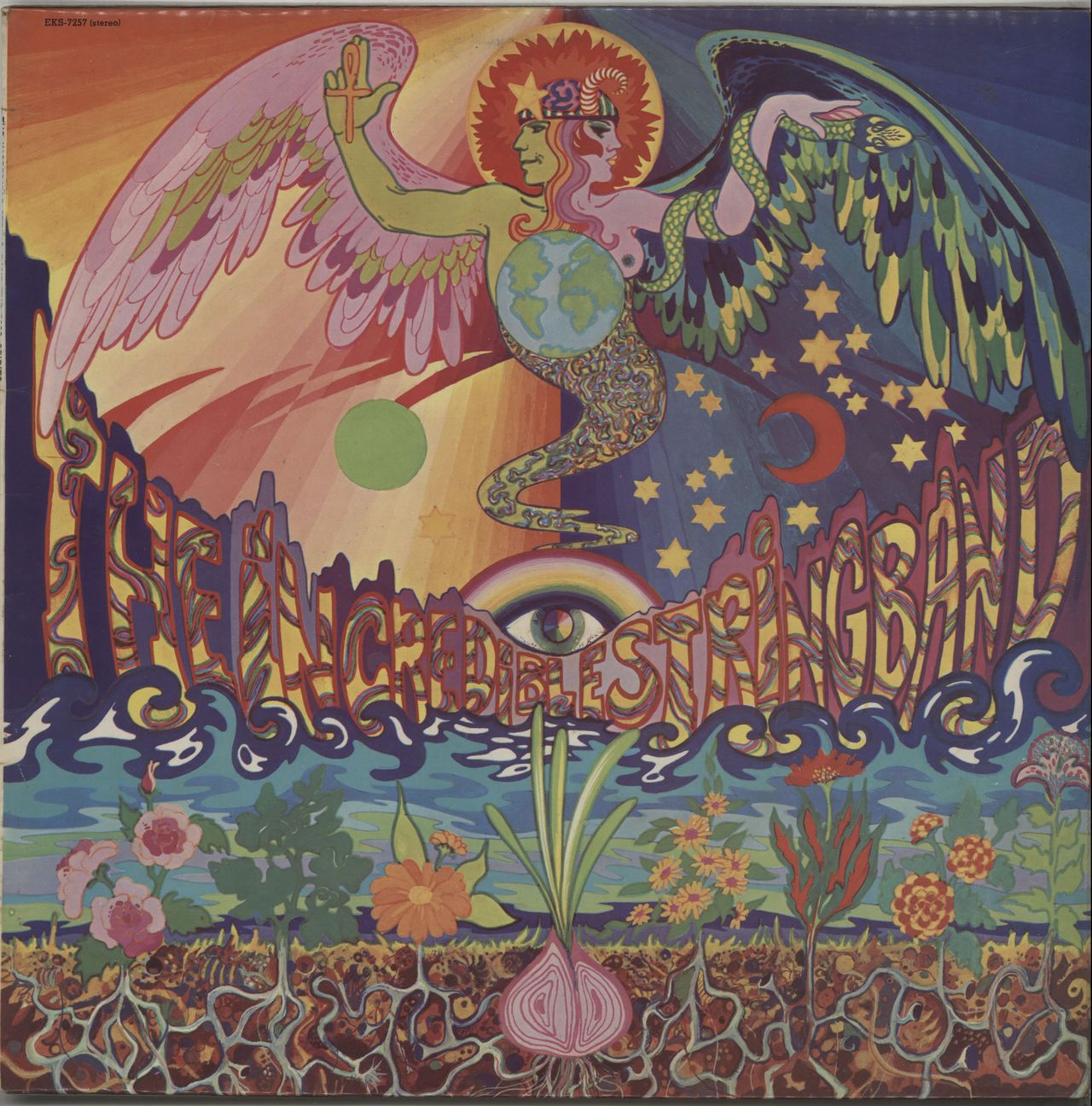 THE INCREDIBLE STRING BAND The 5000 Spirits Or The Layers Of The Onion (1971 UK third issue of the 1967 13-track stereo LP on the 'butterfly' Elektra label, the second album from one of the key pioneering psych-folk groups, matt psychedelic picture sleeve designed by Simon & Marjike from 'The Fool' design collective. The sleeve shows some light edge/spine rubbing and a little light scuffing from rignwear, there is little corner wear with a crease to the reverse but otherwise the panels are bold and al text is legible. The vinyl remains in excellent condition with just a few light surface scuffs to show for its near fifty years EKS-7257)