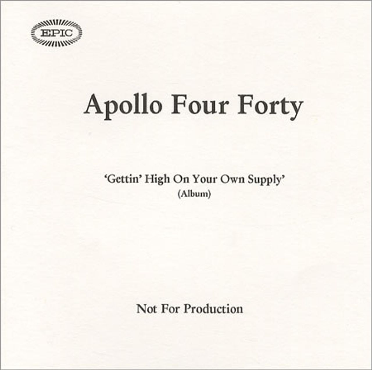 Apollo 440 Gettin' High On Your Own Supply UK Promo CD-R acetate