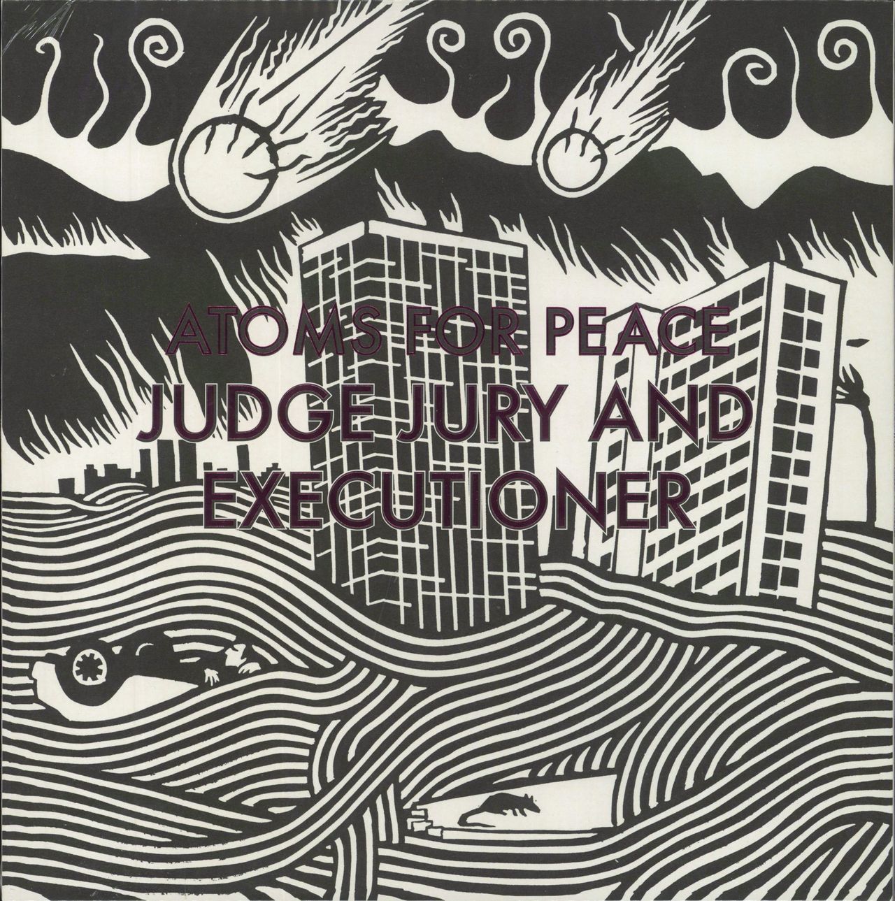 ATOMS FOR PEACE Judge Jury And Executioner (2013 UK limited edition 12" vinyl single taken from the debut album 'Amok' featuring Thom Yorke, Red Hot Chili Peppers bassist Flea, Nigel Godrich, Joey Waronker and Forro In The Dark percussionist Mauro Refosco, also including the b-side recording S.A.D.. Embossed & foil-titled picture sleeve, factory sealed XLT592)