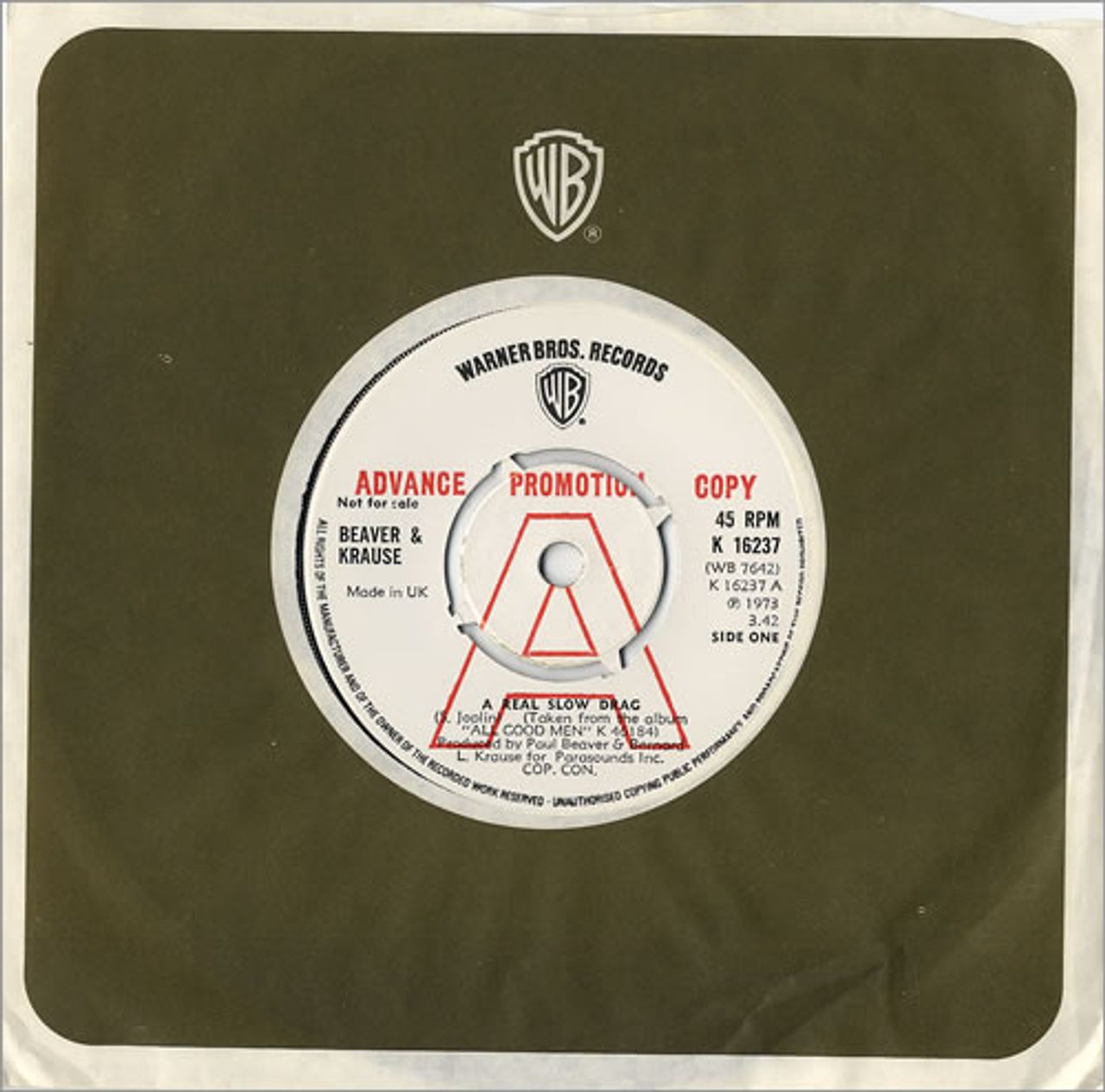 BEAVER & KRAUSE A Real Slow Drag (1973 UK 'A' label advance