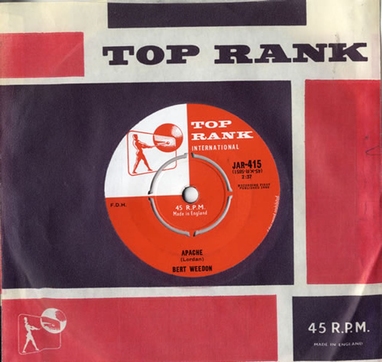 BERT WEEDON Apache (1960 UK 7" vinyl single with intact four prong centre, also including Lonely Guitar, Top Rank company die cut paper sleeve JAR-415)
