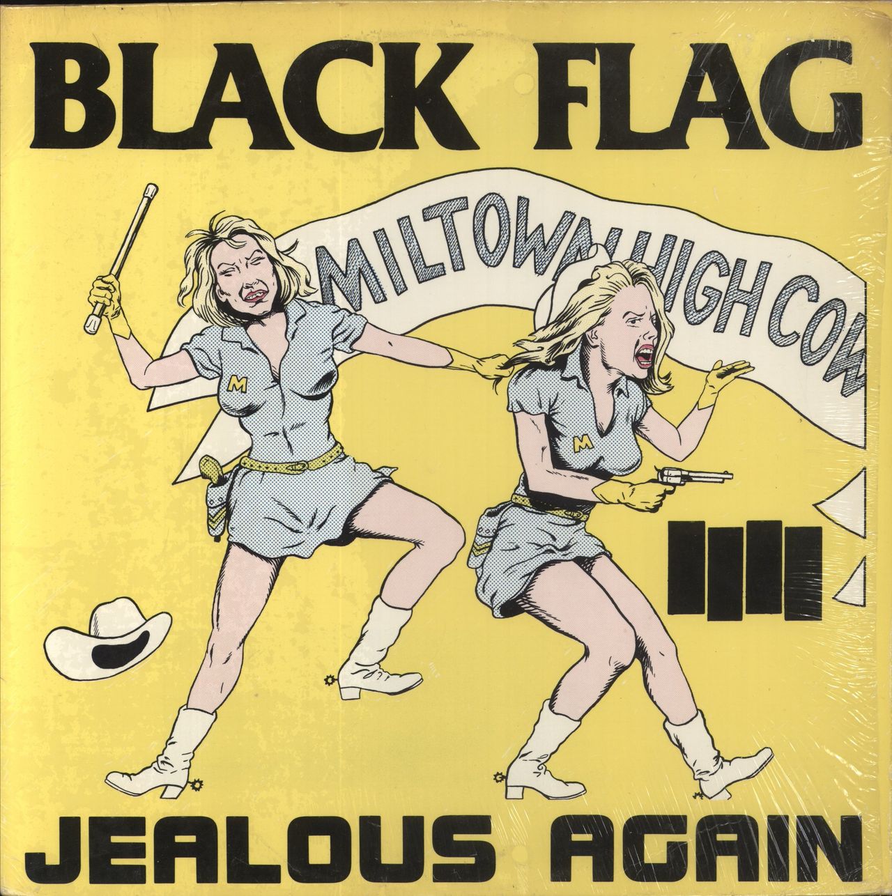 BLACK FLAG Jealous Again (1985 US 6-track 12" vinyl EP - also including Revenge, White Minority, No Values and You Bet We've Got Something Against You. Originally released in 1980. Picture sleeve that remains in the original open shrink and shows some general age and light corner/edge wear. The vinyl reveals only light signs of play SST003)