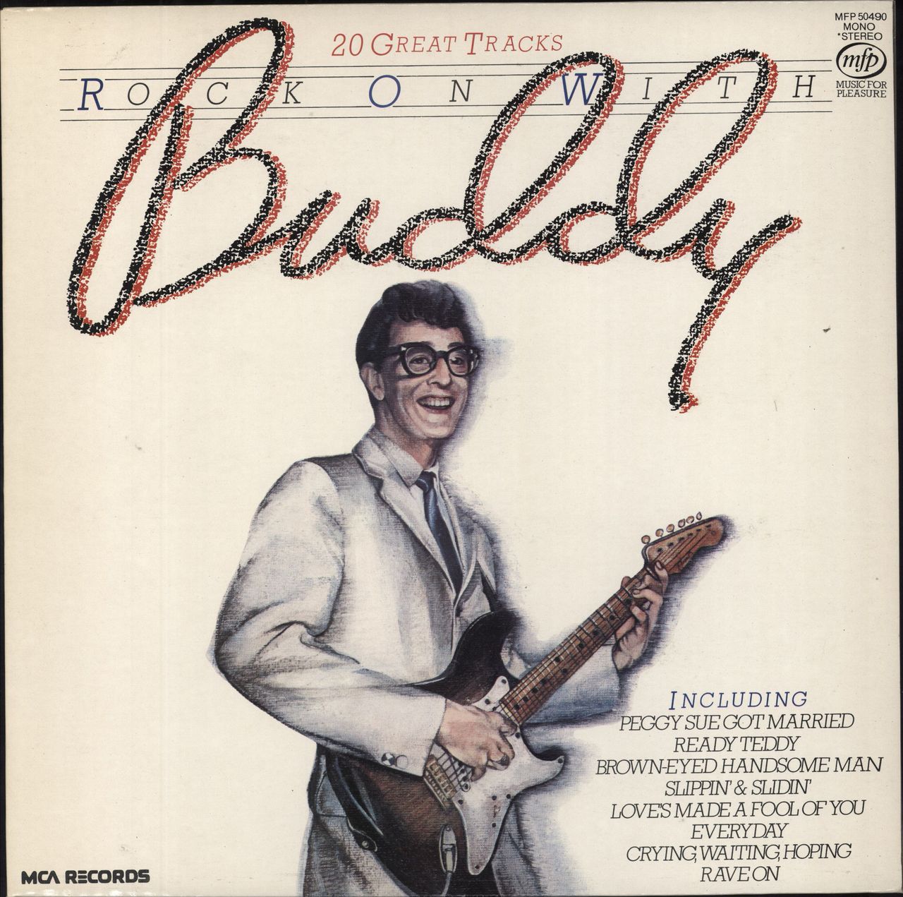 BUDDY HOLLY Rock On With Buddy (1980 UK 20-track LP compilation, including four songs recorded with The Crickets & two with The Three Tunes, glossy picture sleeve. The sleeve shows light wear & the vinyl appears barely played MFP50490)