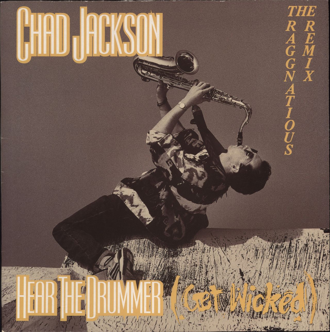 CHAD JACKSON Hear The Drummer (Get Wicked) - The Ragnatious Remix (1990 UK 3-track 12" including Extended Version, Radio Edit and High On Life - Live from Manchester, picture sleeve. The sleeve shows a little shelfwear whilst the vinyl shows only light signs of play BWRTR36)