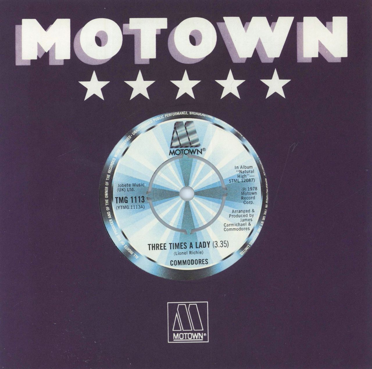 COMMODORES Three Times A Lady (Classic 1978 UK 7" single with intact four prong centre, also including Can't Let You Tease Me, die cut paper sleeve TMG1113)