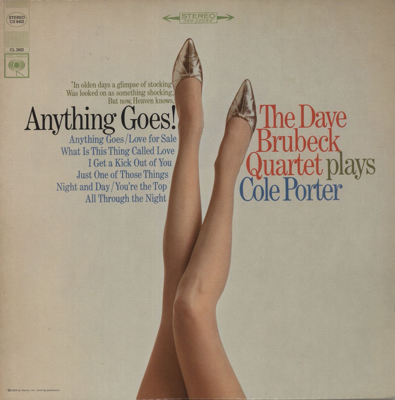 DAVE BRUBECK QUARTET Anything Goes! (1967 US 8-track stereo vinyl LP, on Columbia 2-eye 360 sound label. Also starring Paul Desmond, Joe Morello and Gene Wright playing the music of Cole Porter. Love For Sale, Night And Day & I Get A Kick Out Of You all get a fantastic reworking, Brubeck style, back pasted picture sleeve. The sleeve shows a little age and corner wear. Whilst the vinyl shows light play only)