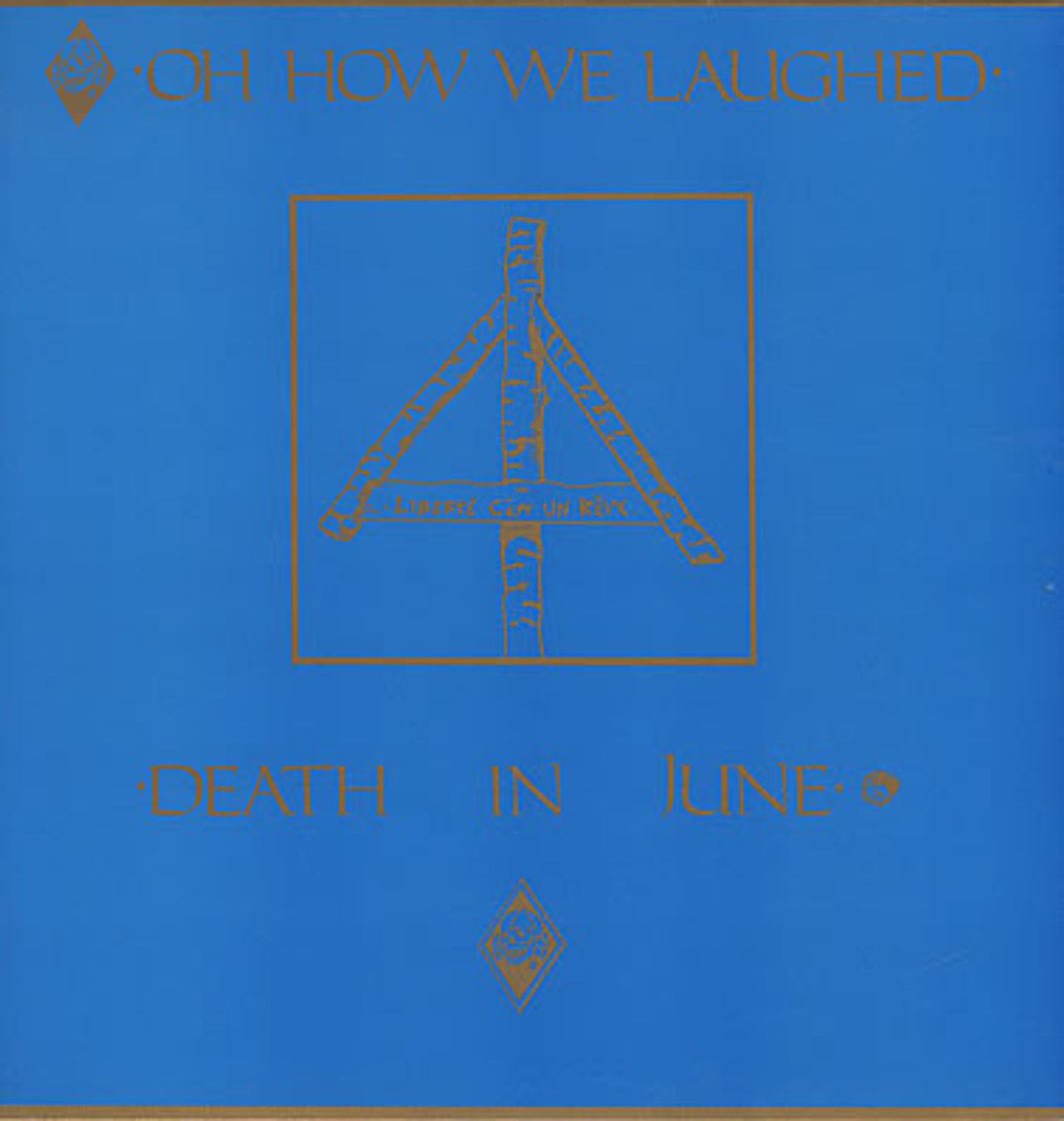 DEATH IN JUNE Oh How We Laughed (Rare 1987 UK original issue 10-track white label live LP recorded in May 1982 & issued by Patrick O'Kill of Sixth Comm after he left the band, including Eyas Media mail order insert, great blue & gold picture sleeve. The sleeve shows some light creasing and edgewear, whilst the vinyl remains in Near Mint condition EYAS011)