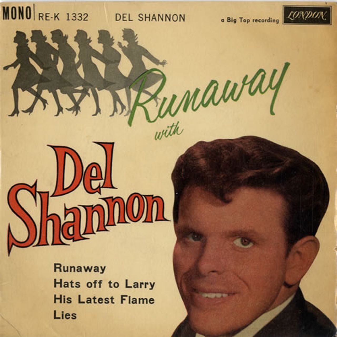 DEL SHANNON Runaway With Del Shannon (1961 UK 4-track 7" EP with four-prong centre, front laminated flipback picture sleeve. Classic EP which also features Hats Off To Larry, Lies & His Latest Flame. The sleeve is Excellent with just a little minor ring wear. The vinyl is clean & in Excellent condition with minimal play RE-K1332)