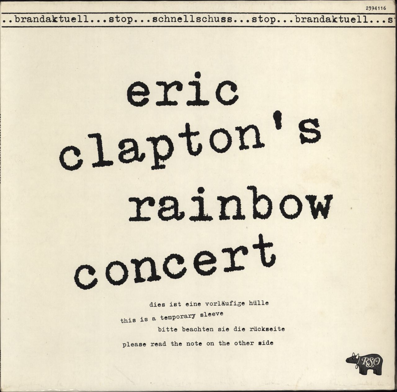 ERIC CLAPTON Eric Clapton's Rainbow Concert (Original 1973 German 6-track LP in special advance promo custom title sleeve,. The sleeve shows only minor wear and the vinyl shows little evidence of play!)