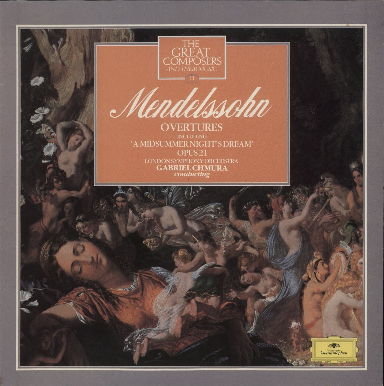 FELIX MENDELSSOHN Overtures including Midsummer Night's Dream, Opus 21 (1983 UK stereo LP, part 11 in 'The Great Composers & Their Music' series, performed by the London Symphony Orchestra, conducted by Gabriel Chmura. The picture sleeve showsminimal wear & the vinyl is near mint)
