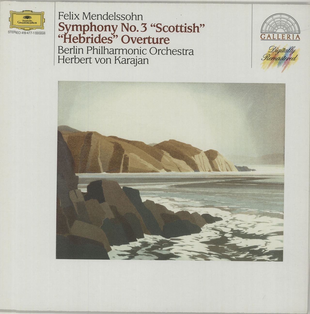 BERLINER PHILHARMONIKER conducted by HERBERT VON KARAJAN Symphony No. 3 "Scottish" / "Hebrides" Overture (1987 Dutch digitally remastered stereo LP issue of the 1971 performance, housed in a glossy picture sleeve with album notes in German, English, French & Spanish. The sleeve shows minimal wear & the vinyl still looks barely played)