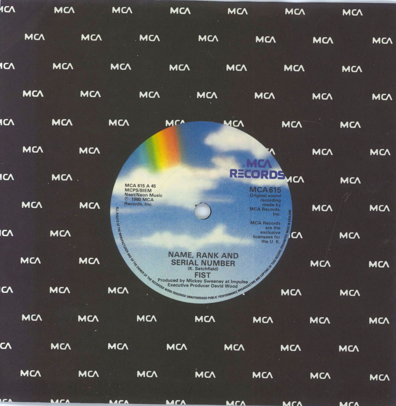 FIST Name Rank & Serial Number (1980 UK issue of the 1977 7" vinyl single by the NWOBHM group, also including You'll Never Get Me Up, MCA die-cut company sleeve MCA615)