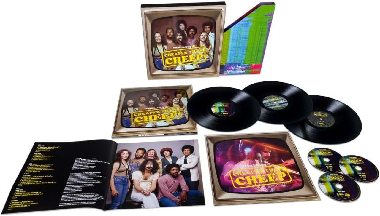 FRANK ZAPPA Cheaper Than Cheep Super Deluxe Edition 3LP / 2CD / Blu-Ray (Fifty years in the vault, Cheaper Than Cheep finally makes its long-awaited debut in this definitive Super Deluxe Edition, capturing an intimate andhistoric moment from Frank Zappa and The Mothers in 1974. Originally conceived as a made-for-TV concert special, the performance was filmed in the band's private rehearsal hall, complete with full touring light rig and stage gear. Technical issues at the time shelved the production - until now. Lovingly restored from the original audio and video masters, this set presents the complete 2-hour concert program, never-before-seen or heard, and newly mixed in Dolby Atmos, 5.1 Surround, and high-resolution stereo. Zappa aficionados will recognise this as one of the most up-close and revealing documents of the 1974 Mothers lineup, with material spanning classic instrumental workouts, deep cuts, and irreverent satire. Official Zappa release #130, this Super Deluxe box set includes the full performance on 180-gram black vinyl (3LP), 2CDs, and a Blu-ray featuring the restored video, all housed in a deluxe telescoping slipcase with a comprehensive booklet packed with unseen photos and new liner notes by Ruth Underwood and Joe Travers. Hype sticker & factory sealed)