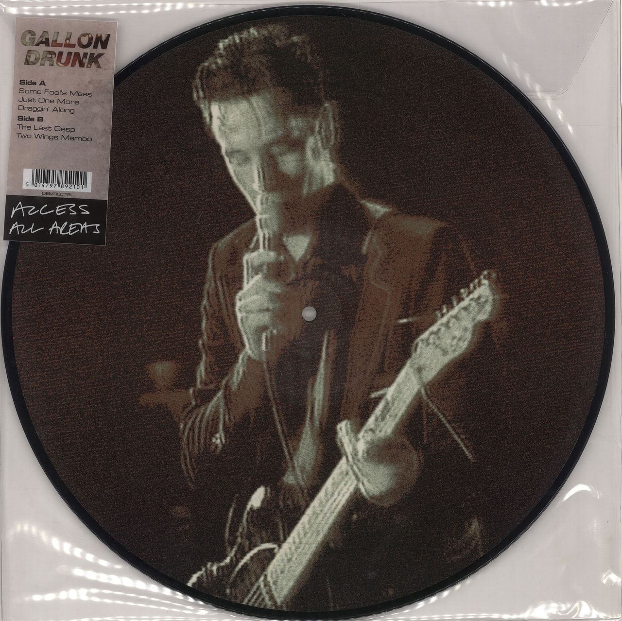GALLON DRUNK Access All Areas (2015 UK limited edition 5-track Picture Disc LP featuring audio recordings from their performance at London’s Town & Country Club when New Musical Express invited them to play a 1992 charity concert entitled Viva Eight. The chaotic atmosphere that night spawned breathtaking musical improvisation as the five-piece band tore through material from just-released first album 'You, The Night…And The Music' plus single 'Draggin’ Along'. The disc is UNPLAYED issued within the custom-stickered clear PVC sleeve DEMREC79)