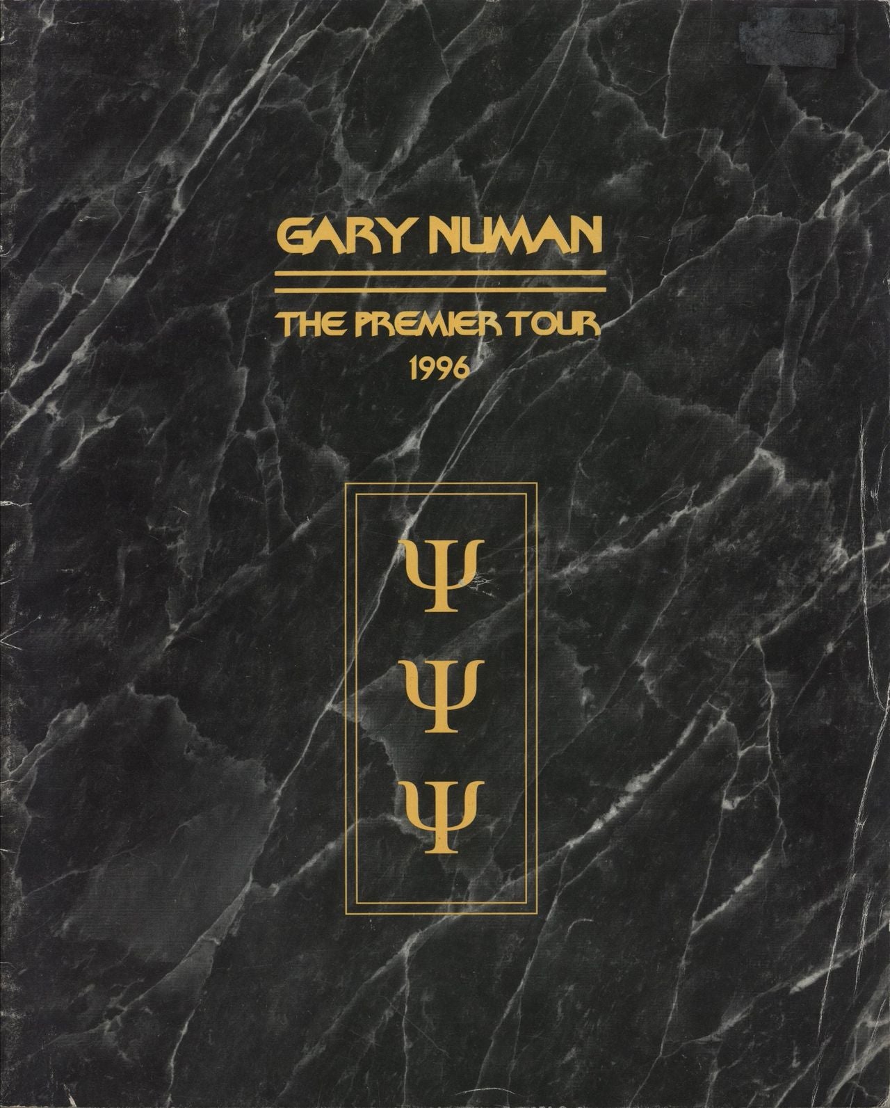 GARY NUMAN The Premier Tour 1996 (UK 20-page 10" x 8" glossy tour programme featuring biographical information on Gary and the band, plus tour dates, crew, with amended crew insert and lots of black & white photographs. The inside back cover features a colour advertisement for the 'Cars Premier Mix' single and 'The Premier Hits' album. The cover has some mild age wear and a slight sticker mark, otherwise an Excellent example)