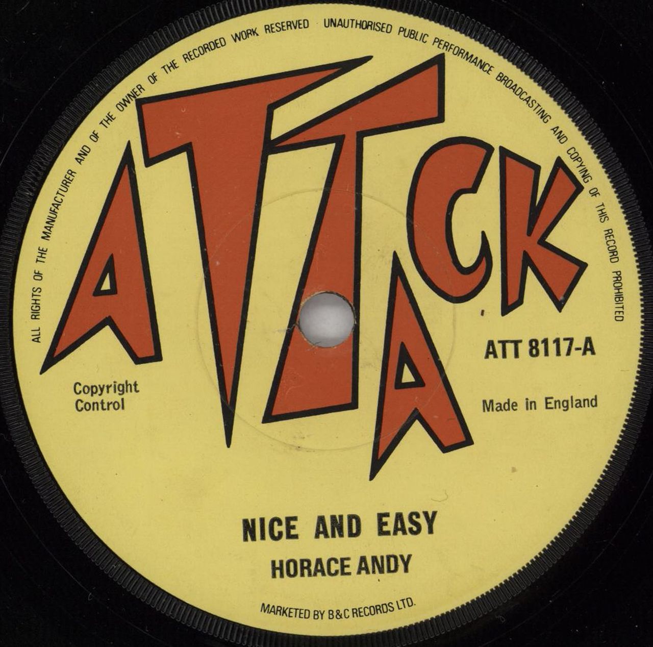 HORACE ANDY Nice And Easy (1975 UK solid centre 7" vinyl single, also including Nice And Easy (Version), plain company die cut paper sleeve ATT8117)