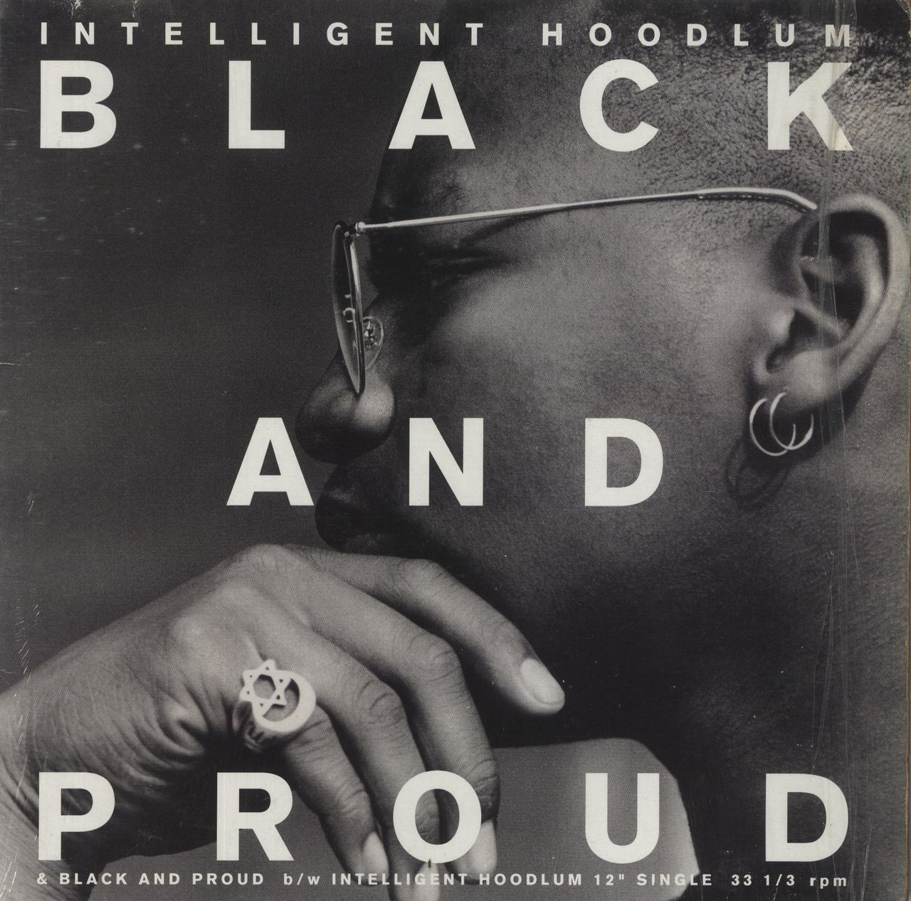 INTELLIGENT HOODLUM Black And Proud (1990 US 3-track 12" vinyl single. Includes the A Cappella version and Intelligent Hoodlum. Picture sleeve. The sleeve remains in the open shrink and a little edgewear. The vinyl has just a few cosmetic hairlines )