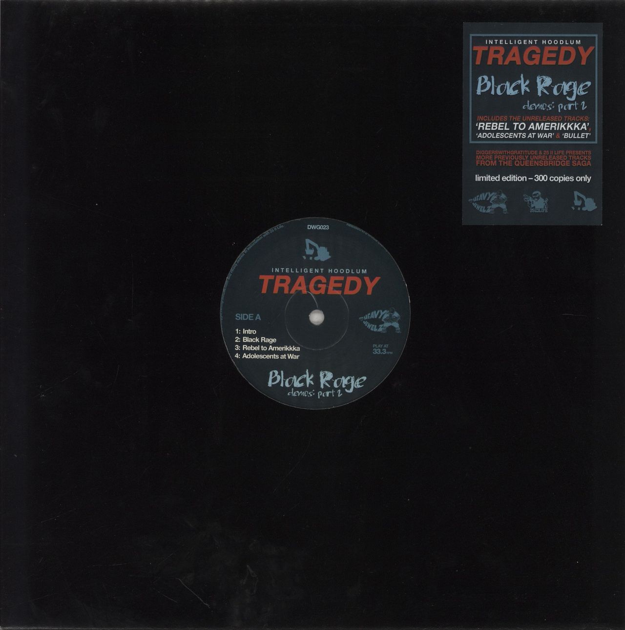 INTELLIGENT HOODLUM Tragedy - Black Rage Demos Part 2 (2015 UK 8-track LP, pressed on Green Translucent Vinyl Plain black hype-stickered die-cut sleeve with clear PVC outer sleeve, includes press release insert. The vinyl is in Near Mint condition ***Limited to only 300 copies*** DWG023)