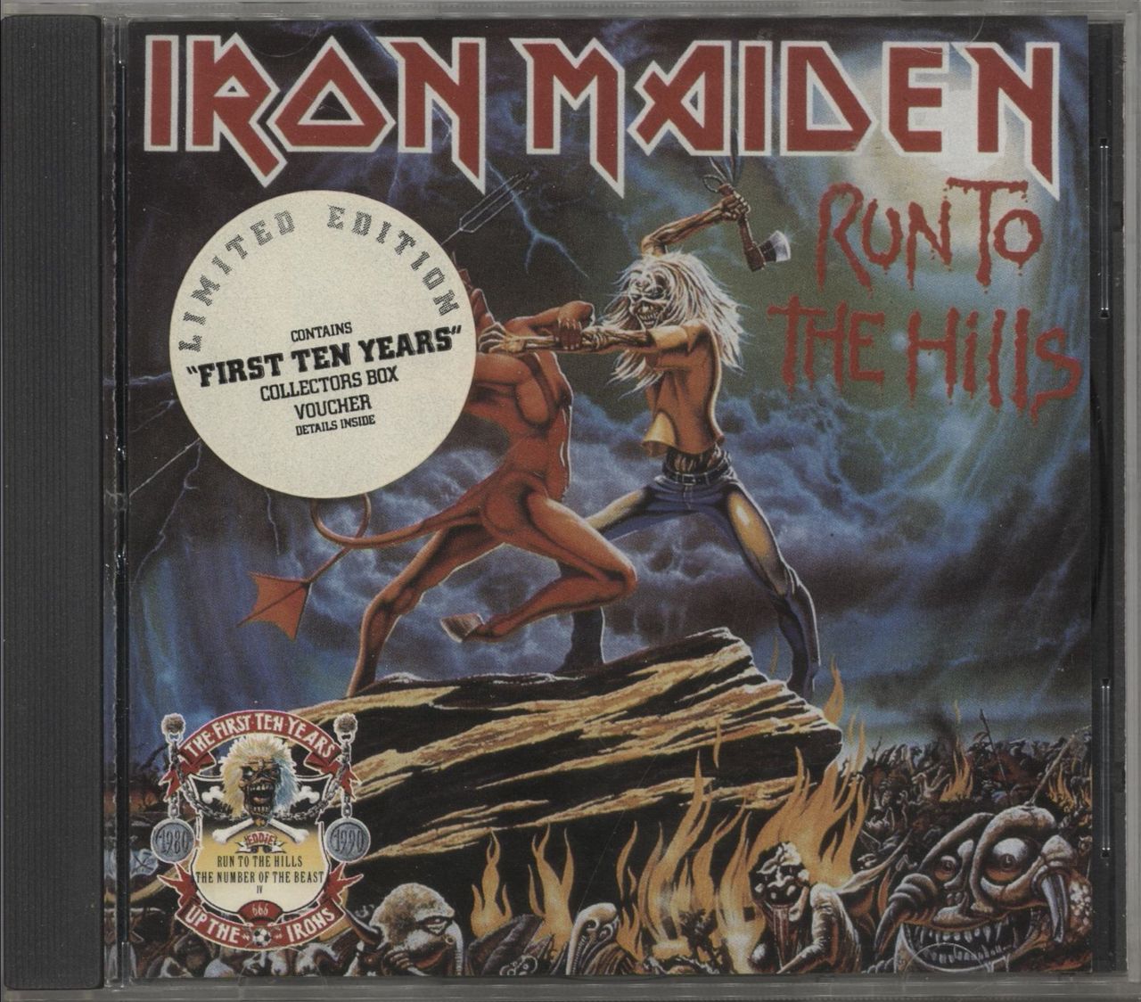 IRON MAIDEN Run To The Hills (1990 UK 5-Track 'The First Ten Years' limited edition series PICTURE DISC CD, featuring the original B-Sides to each single including Total Eclipse and Remember Tomorrow -Live in Italy plus also includes the exclusive track Listen With Nicko Part IV. Housed in standard album jewel case with hype sticker attached, includes picture sleeve incorporating the original artwork for both releases with the 'First Ten Years' logoin the corner. The disc isprinted with a reproduction of the label used on the singles, plus includes the original voucher for the box! CDIRN4)