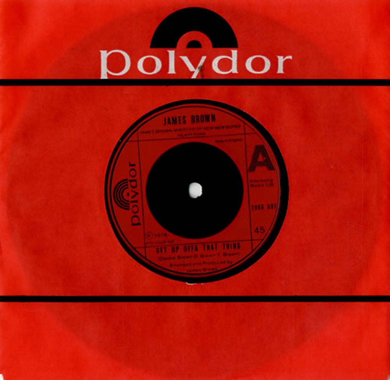 JAMES BROWN Get Up Offa That Thing (1976 UK injection moulded 7" vinyl single, also including Release The Pressure, Polydor company die cut paper sleeve)