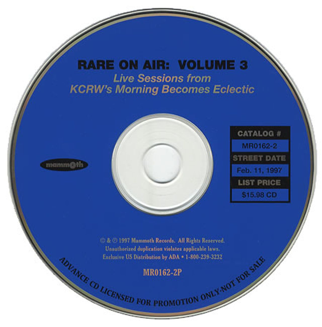 KCRW Rare On Air: Volume 3 US Promo CD album