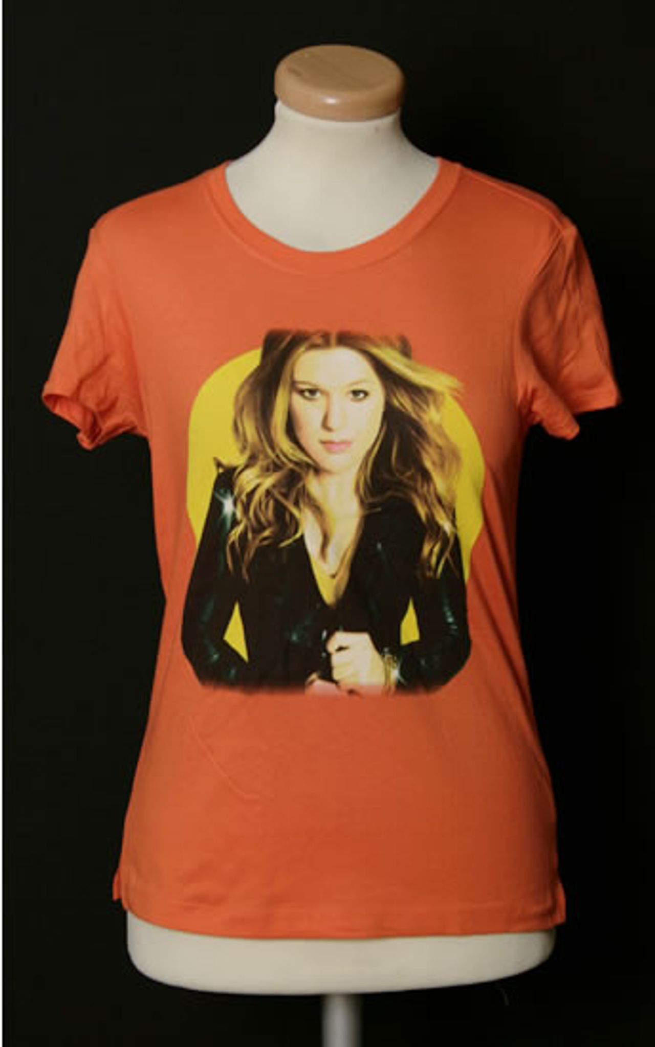KELLY CLARKSON All I Ever Wanted (2009 US women's 100% cotton orange skinny fit t-shirt - a great t-shirt, issued to promote Kelly's fourth studio album, All I Ever Wanted. This wonderful shirt features Kelly's nameacross the shoulders and the image from the album cover on the front - a great item for the summer!)