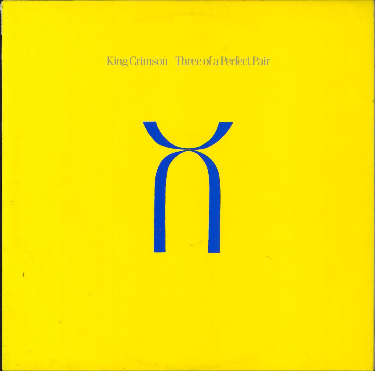 KING CRIMSON Three Of A Perfect Pair (1984 UK 9-track vinyl LP, the final part in the trilogy from the newly vamped Adrian Belew period, picture sleeve with lyric inner. The sleeve [VG] shows a tiny residual sticker mark/paper tear and a littlegeneral storage wear; the inner has a seam split. The vinyl remains in excellent condition. A nice play offered at an advantageous price EGLP55)