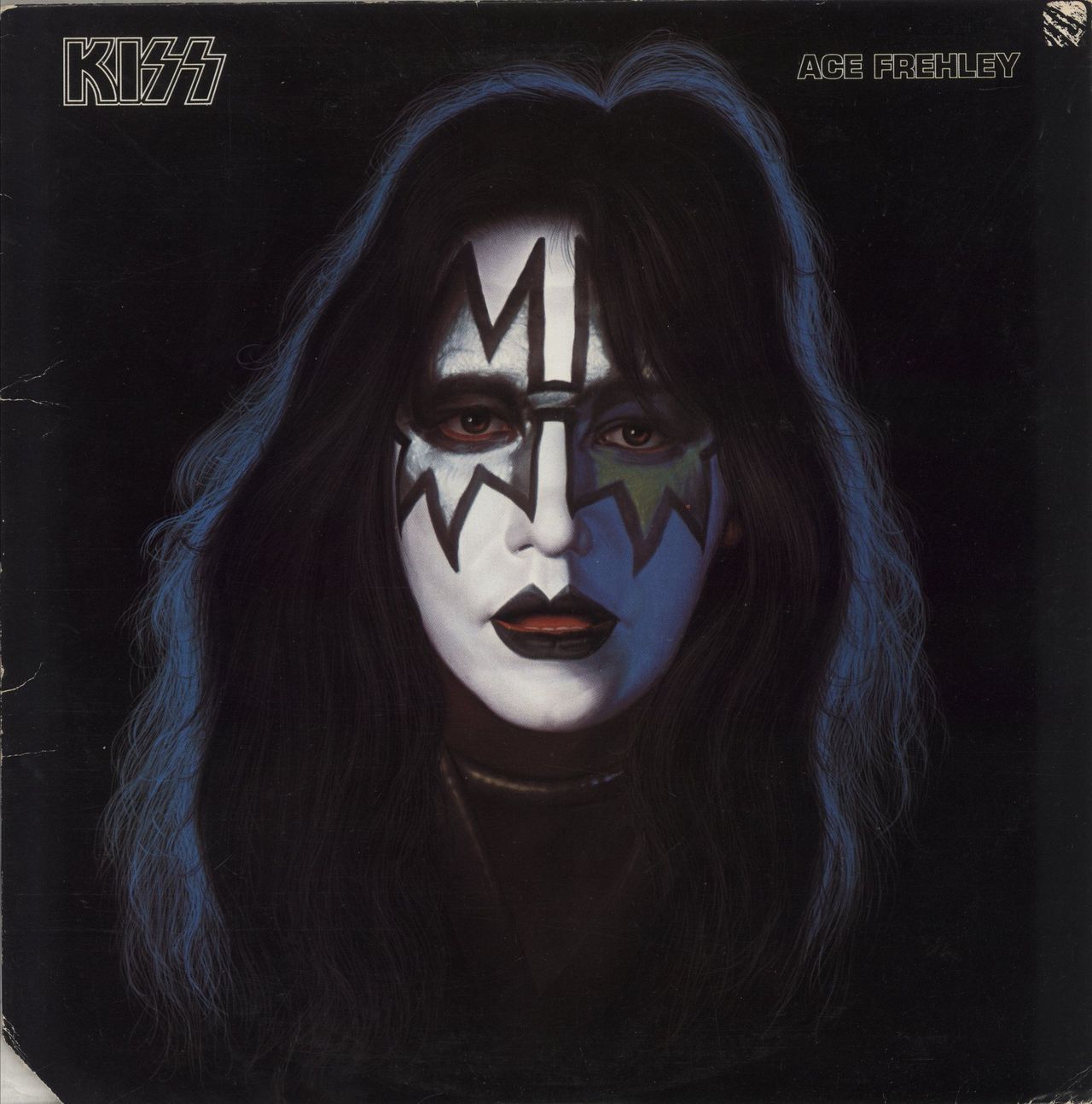 KISS Ace Frehley (Original 1978 US 9-track Casablanca label vinyl LP album, housed in a glossy picture sleeve with a deletion corner cut and paper picture inner. The sleeve shows some notable edgewear, creasing and a small amount of paper lossfrom sticker removal on the top left corner. The inner shows a seam split at the bottom and the vinyl shows few signs of play; remaining Excellent NBLP7121)