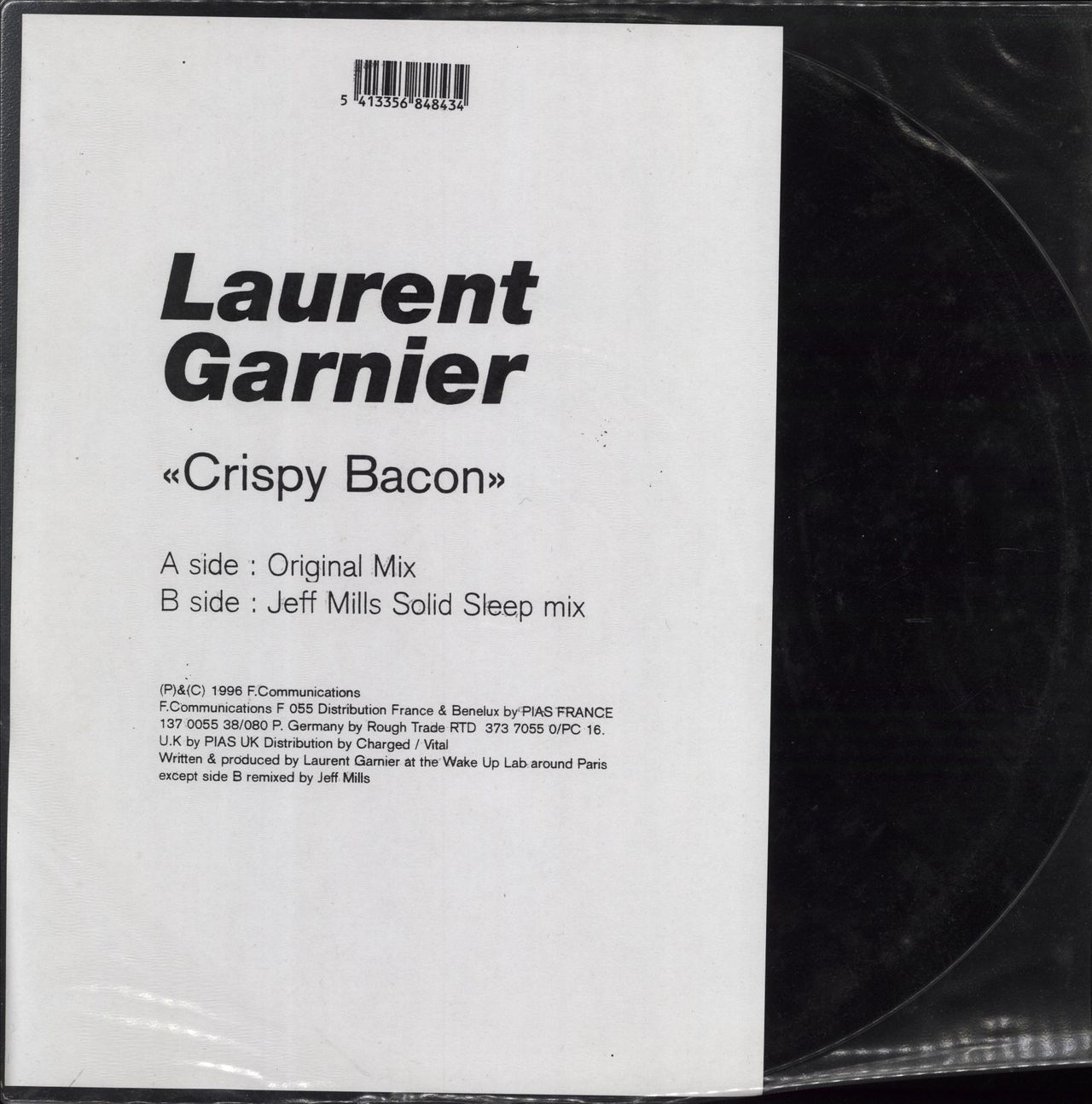 LAURENT GARNIER Crispy Bacon (Rare 1996 French limited edition 12" vinyl single with no labels, clear PVC sleeve and A4 sized insert with track info. Includes Laurent's club monster on the A-Side backed with a rare remix appearance from Detroit legend Jeff Mills, who delivers the super tough Solid Sleep Mix on the flip. Limited to just 2000 copies worldwide F055)