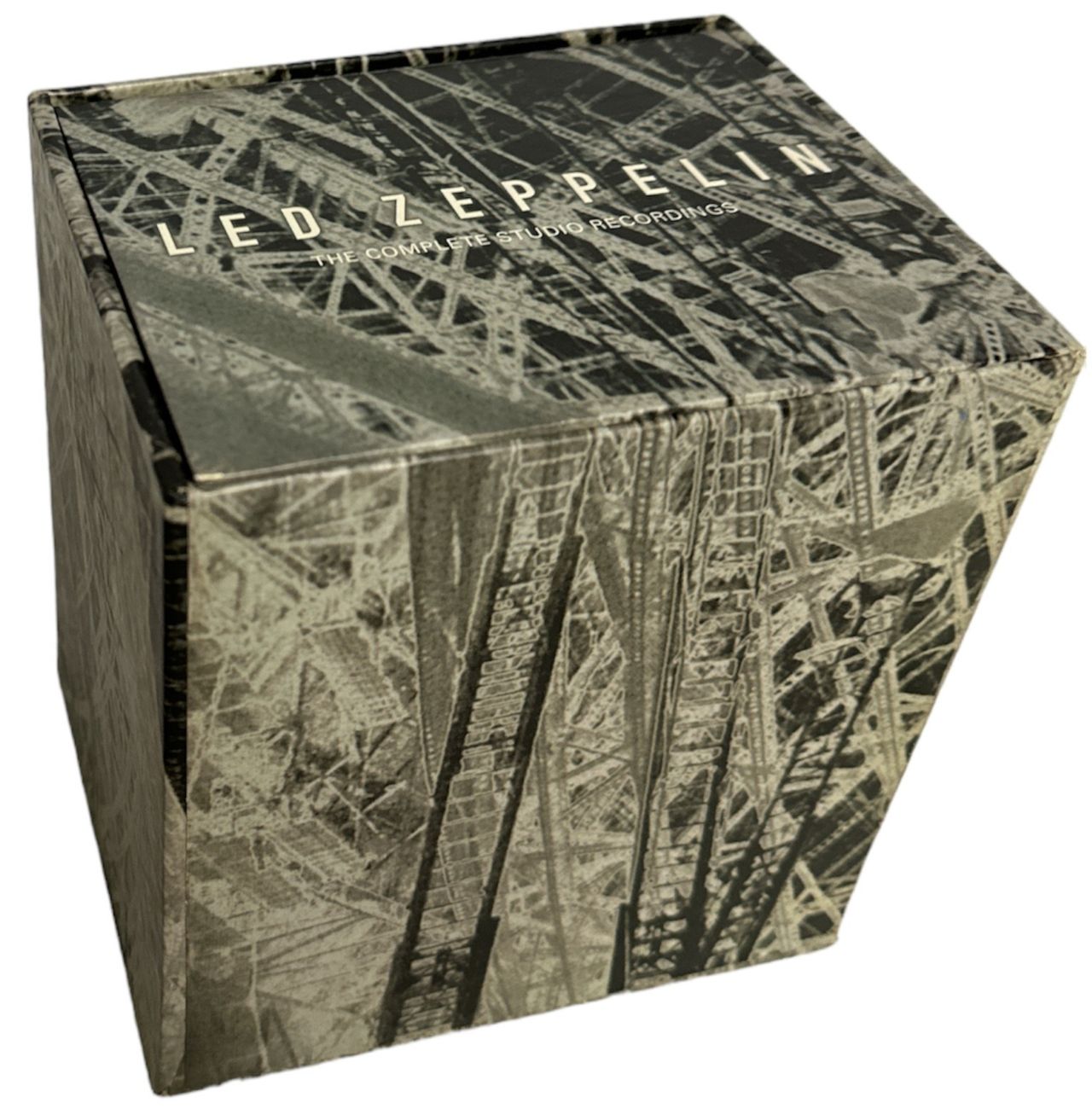 LED ZEPPELIN The Complete Studio Recordings (1993 US limited edition TEN CD box set featuring all nine studio albums as originally sequenced and digitally remastered by Jimmy Page & George Marino at Sterling Studio in New York, with four bonus tracks. The ten discs are paired up in five hardback book style digipak picture sleeves featuring the original album artwork inside together within an extensive booklet featuring details about the band with lots of great black and white and colour images, housed together in the 6" x 5.5" x 4.5" square picture box. The box is missing the ribbon tab but otherwise shows only a little corner wear. The contents are in Near Mint to Excellent condition with minimal signs of handling )
