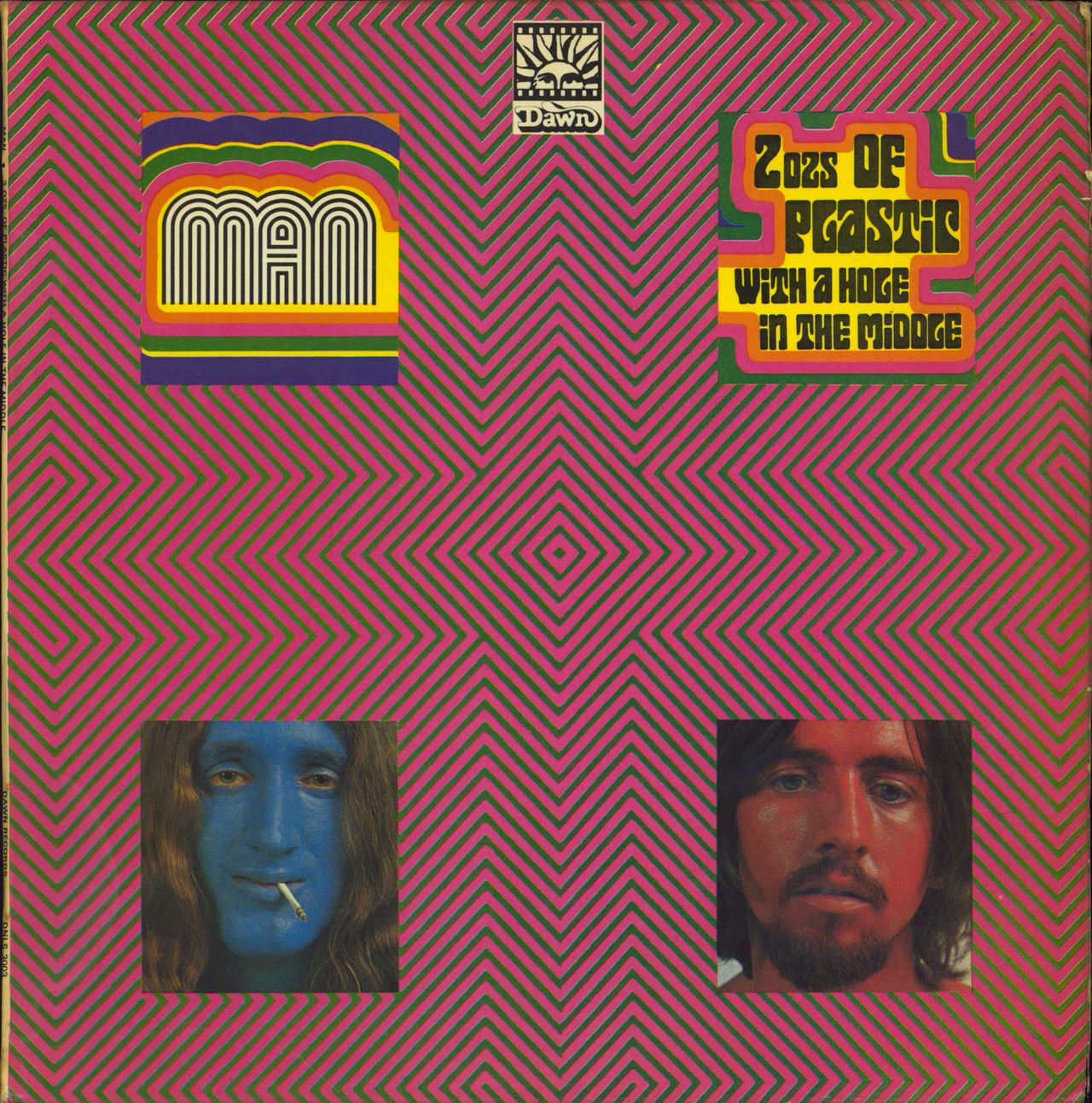 MAN 2 Ozs. Of Plastic With A Hole In The Middle (1970s UK issue of the 1969 6-track stereo LP on the white Dawn label, pressed on translucent red specled vinyl [visible when held up to a light source], gatefold picture sleeve DNLS3003)