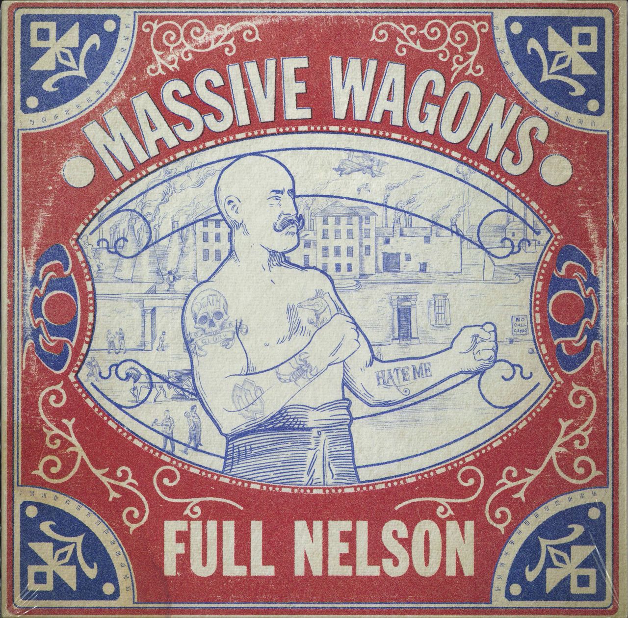 MASSIVE WAGONS Full Nelson (2018 UK/EU limited edition 12-track LP pressed on Blue Vinyl - This fourth studio album from the English anthemic rockers is also their debut on the Earache Records label and features a collection of quintessentially British hard rock 'n' roll tracks and a live energy that is impossible not to get swept up in, mainly thanks to singer Baz Mills' mesmerising, animated and infectious showmanship and the band's musical muscle; including the single 'Under No Illusion'. The vinyl is UNPLAYED housed in the picture sleeve which retains its opened shrinkwrap [unsealed to check the vinyl colour variant only] complete with the lyric printed inner)