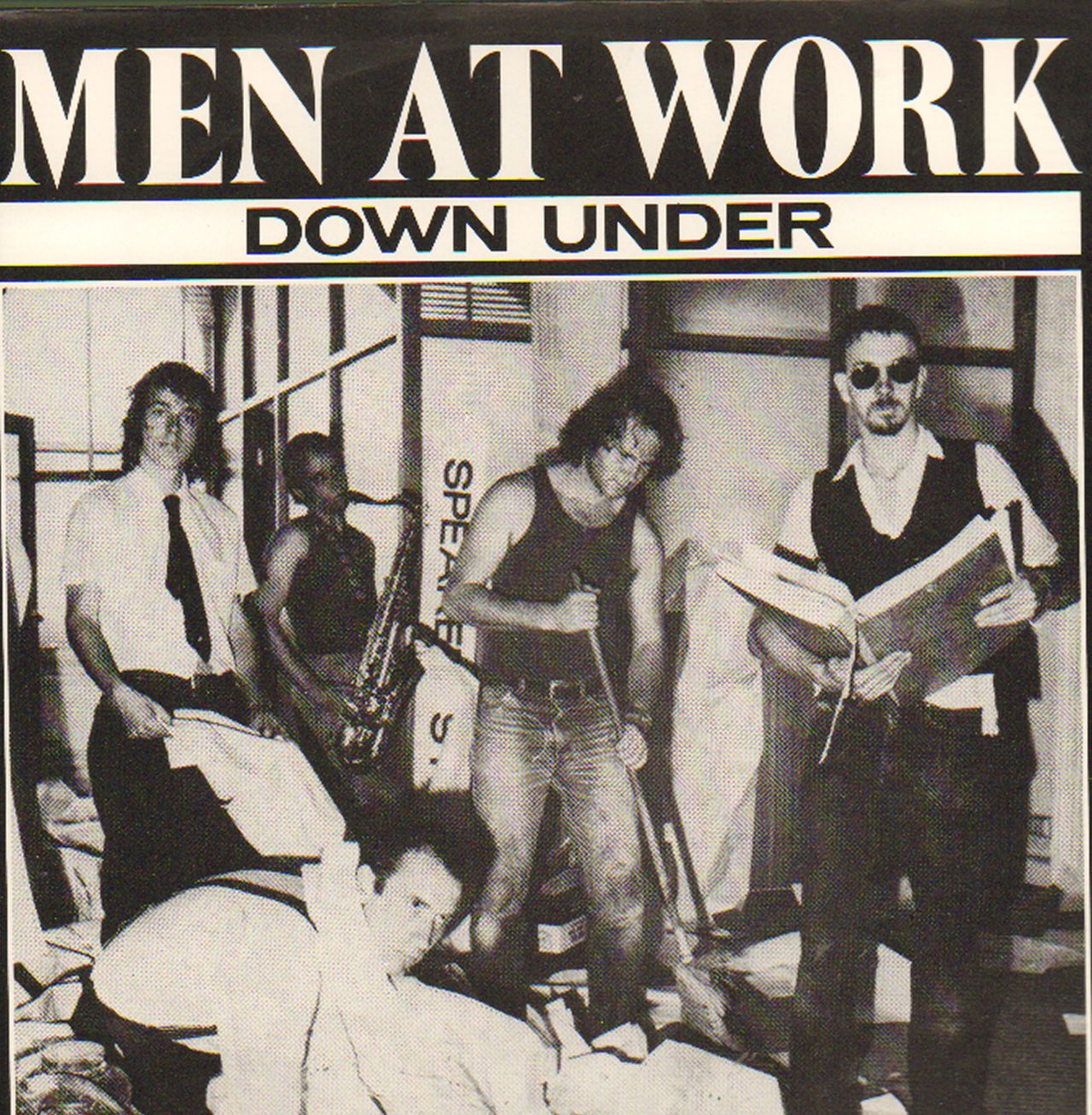 MEN AT WORK Down Under (1982 Dutch wide-centred 7" vinyl single, also including Helpless Automaton, glossy black & white picture sleeve CBSA2066)
