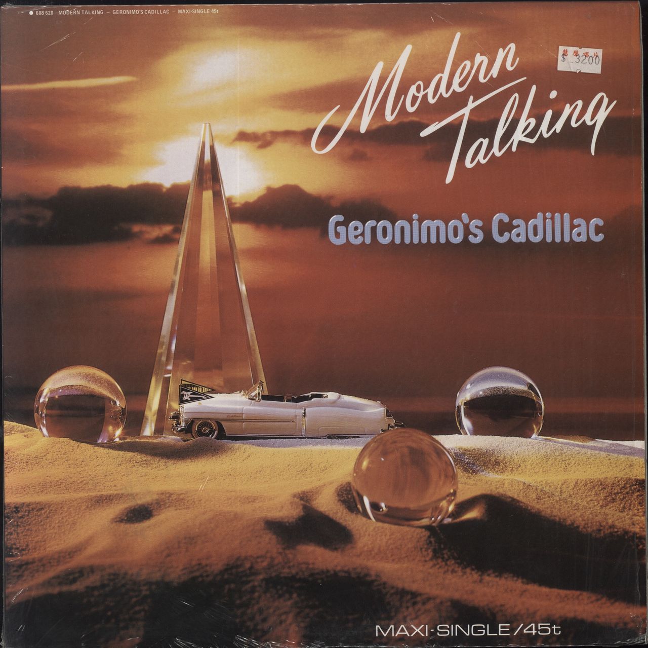 MODERN TALKING Geronimo's Cadillac (1986 East Asian 3-track 12" maxi-single featuring the Long Vocal Version, Instrumental & Keep Love Alive - Vocal Bonus Track. The picture sleeve is still in the open shrinkwrap with the region specific pricesticker attached. The vinyl is Excellent with minimal play)