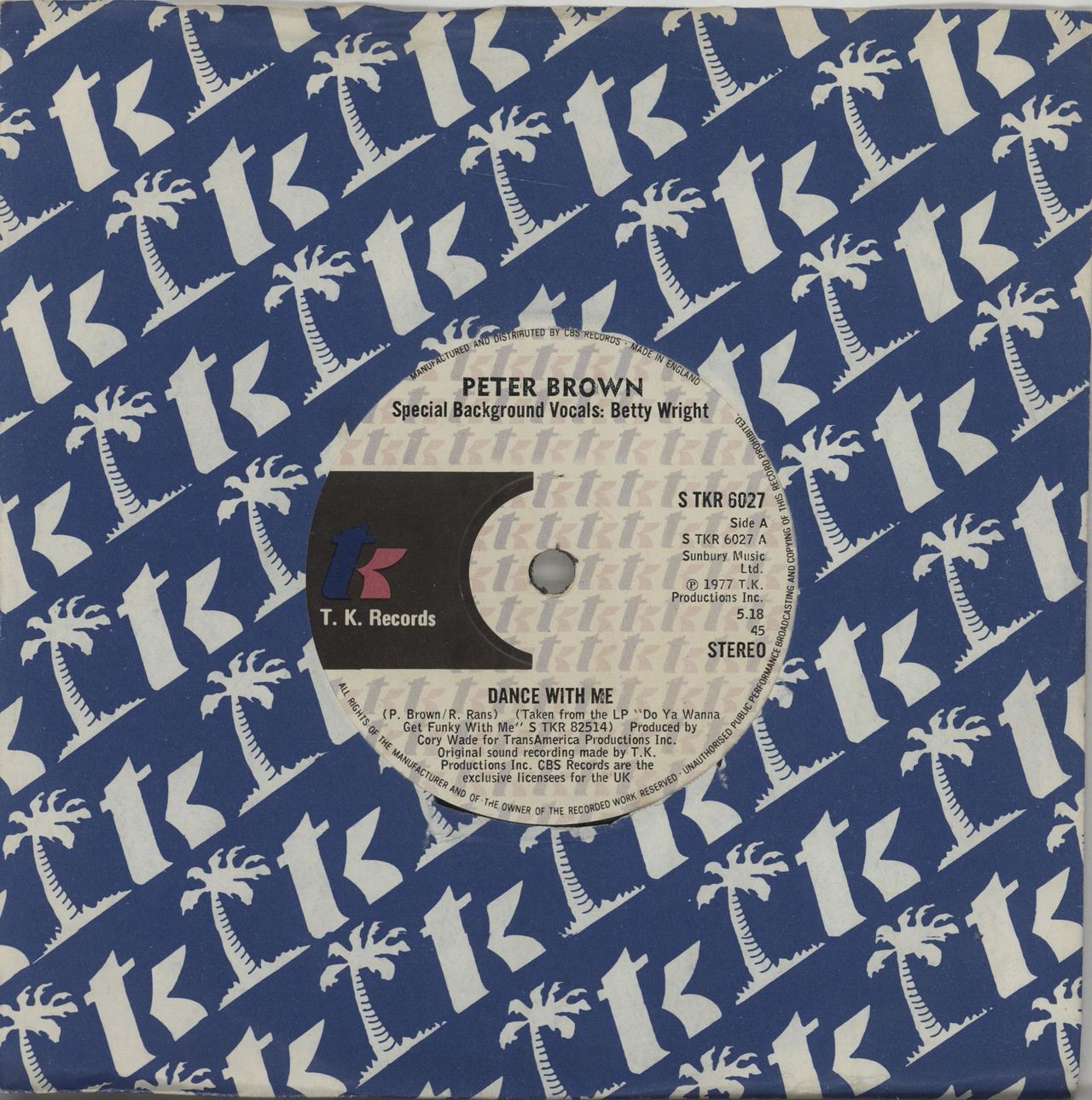 PETER BROWN Dance With Me (1978 UK solid centred 7" vinyl