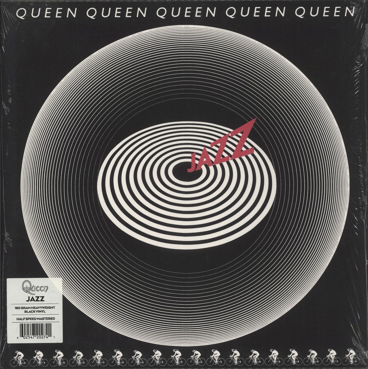 QUEEN Jazz: Half Speed Mastered (2015 UK/EU limited edition 13-track Half Speed Mastered LP pressed on Audiophile quality 180gram Heavyweight Black Vinyl - Originally released in 1978, their seventh studio album includes the singles Bicycle Race, FatBottomed Girls and Don't Stop Me Now. The vinyl looks barely played issued in the embossed gatefold picture sleeve which retains its open factory shrinkwrap and barcoded hype sticker along with inner and the fold-out nudefemale cyclists poster printed with the lyrics on the back)