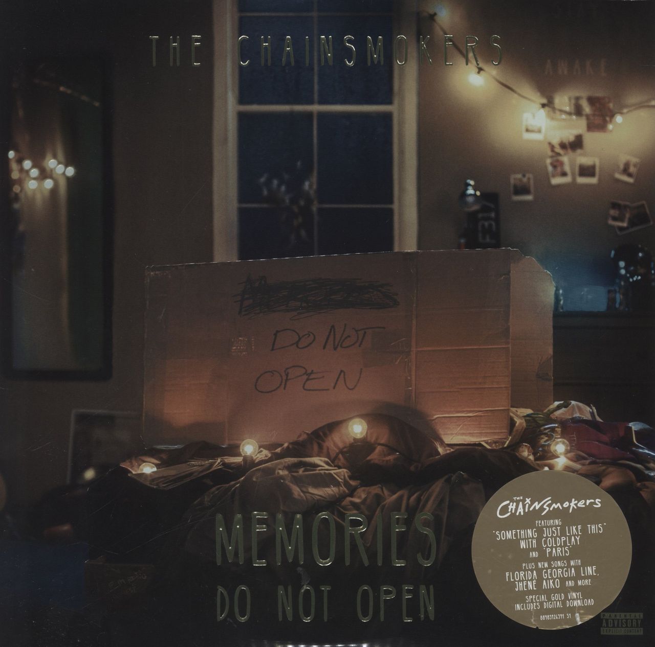 THE CHAINSMOKERS Memories...Do Not Open (2017 UK/EU limited edition 12-track LP pressed on Gold Vinyl - The debut studio album by American electronic music duo with guest appearances from Coldplay aswell as Emily Warren, Louane, Jhené Aiko and Florida Georgia Line; including the singles Paris, Something Just Like This and Honest. The embossed glossy gatefold picture sleeve also has gold embossed titles and has the circular hype sticker affixed to the front [by the original owner] but comes with the lyric printed inner and download code voucher while the vinyl looks barely played)