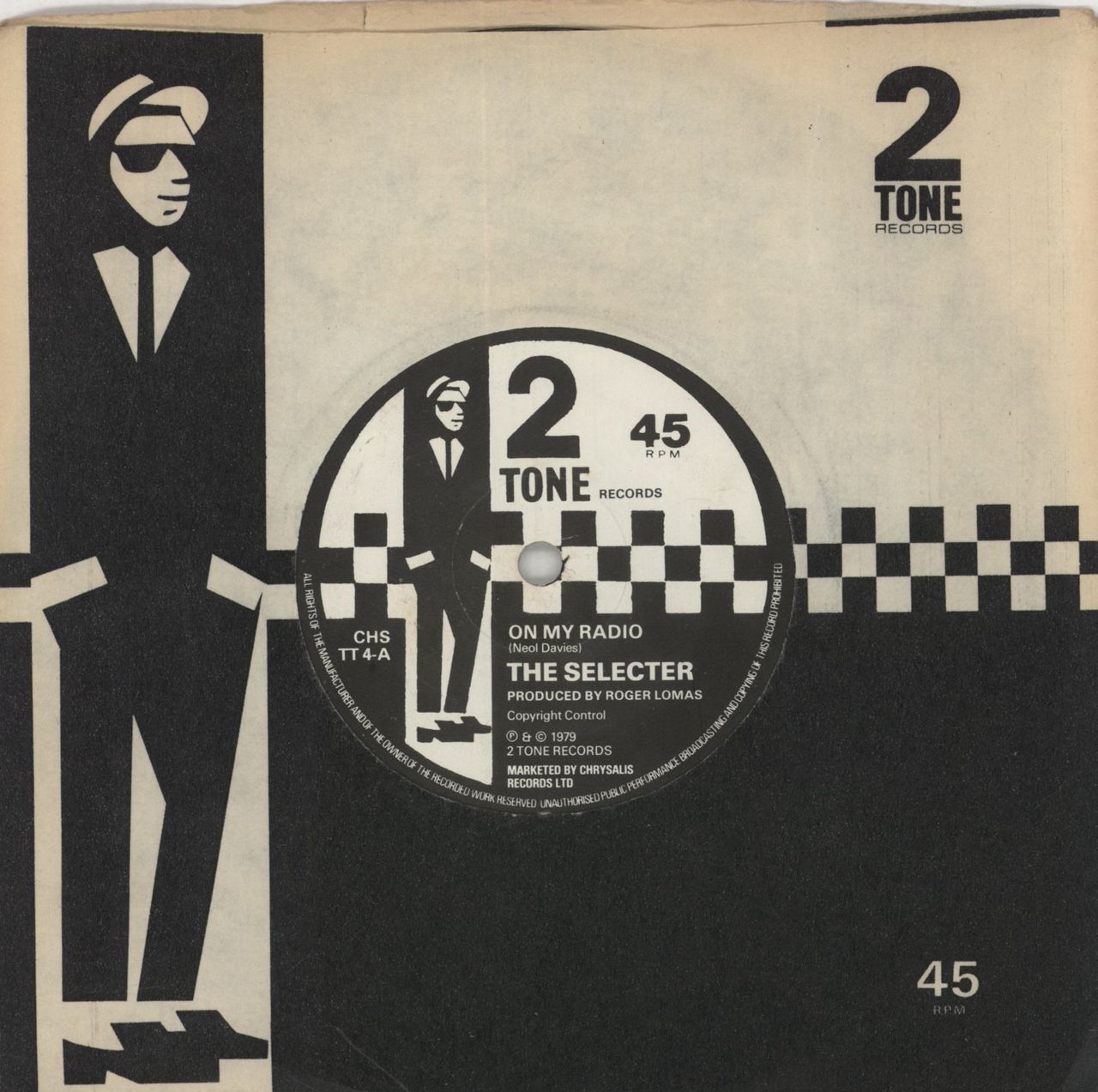 THE SELECTER On My Radio (Original 1979 UK solid centre 7" vinyl single with the classic black & white 2 Tone paper label, also including Too Much Pressure. The vinyl shows only minor signs of play and comes issued in the original 2 Tone Records die-cut paper sleeve CHSTT4)