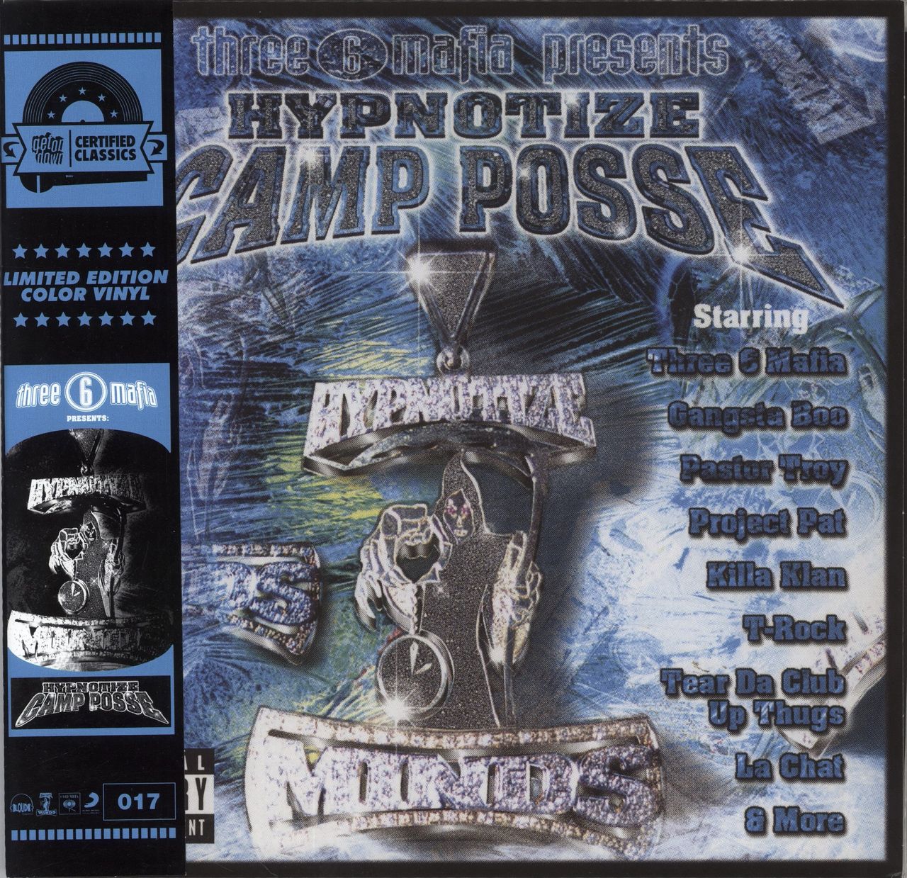 THREE 6 MAFIA Hypnotize Camp Posse (2022 US 17-track double LP, with picture sleeve and Obi-strip, pressed on Blue Spinner coloured vinyl and limited to 1000 copies. Excellent release from the Three 6 Mafia adjacent collective, originally released in 2000 and featuring appearances from Gangsta Boo, Juicy J, Project Pat and more. Although not sealed, both the sleeve and vinyl remain in near mint condition)