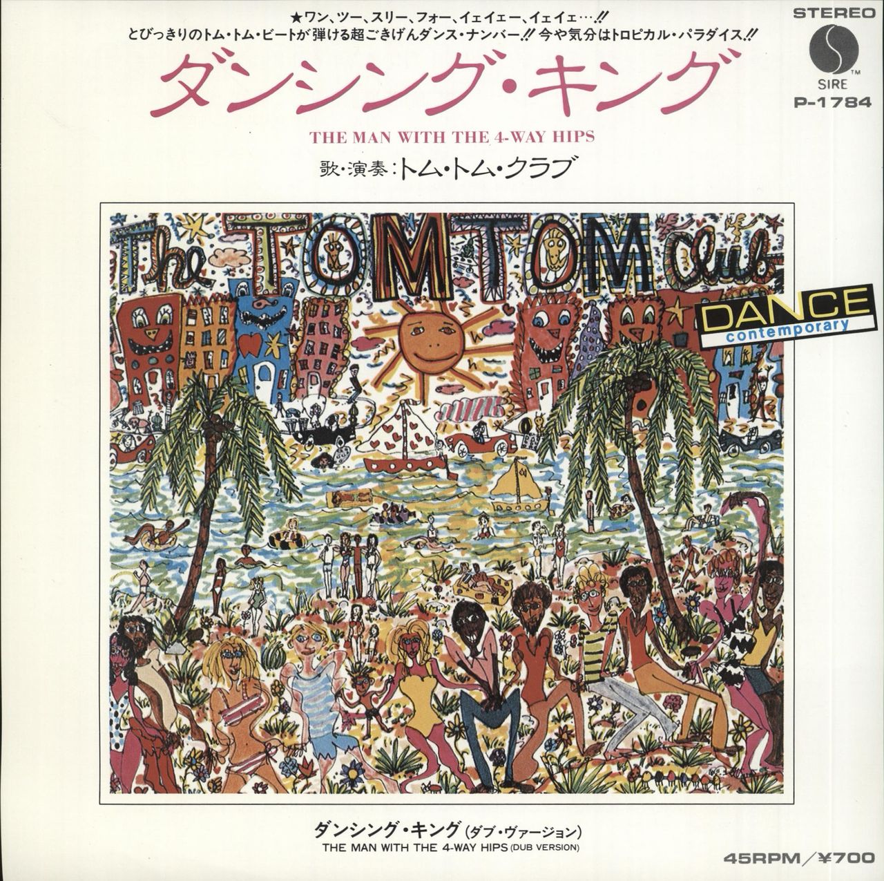 TOM TOM CLUB The Man With The 4-Way Hips (Scarce 1983 Japanese white label wide centred promo sample vinyl 7" for the single release, also including the Dub Version. The vinyl appears barely played within a WB company die-cut paper sleeve with the double-sided picture / lyric insert P-17841)