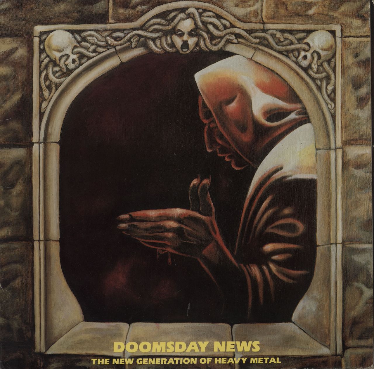 VARIOUS Doomsday News (1988 German 11-track vinyl LP compilation featuring rare material from Coroner, Kreator, Celtic Frost, Helloween and more, within a glossy gatefold picture sleeve with record label catalogue inner and merch insert. The sleeve shows minimal wear and the vinyl has light signs of play N0105)