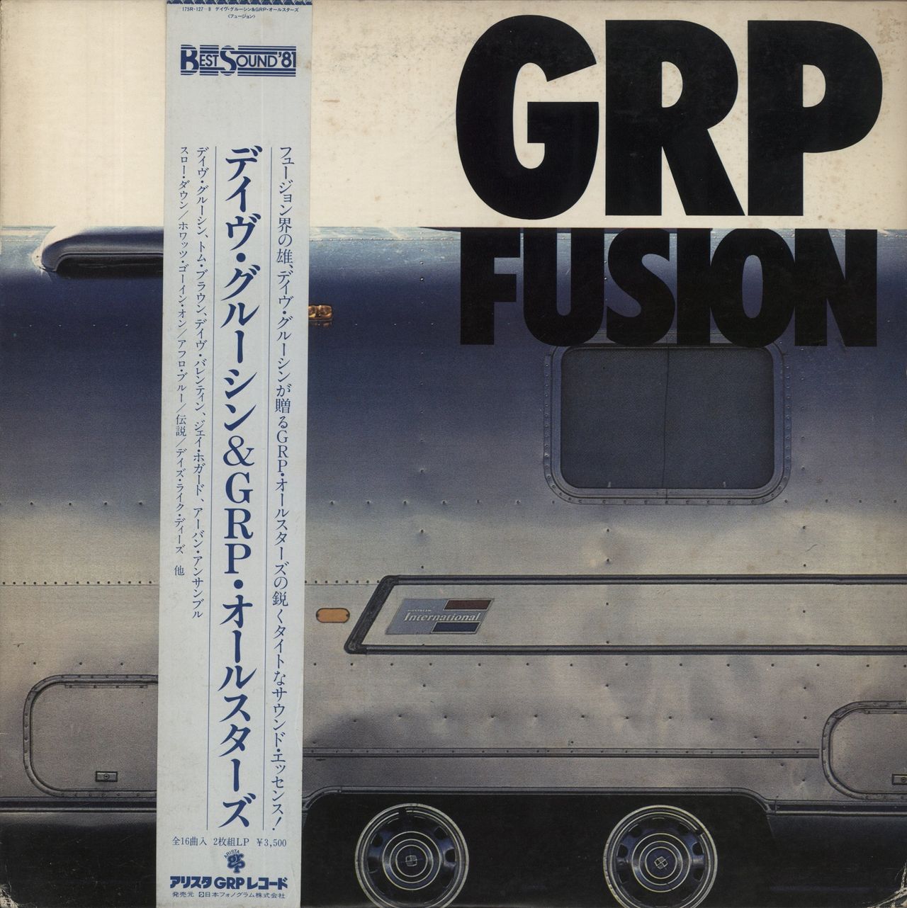 VARIOUS GRP Fusion (1981 Japanese 16-track vinyl 2-LP set, featuring material from Tom Browne, Dave Valentin, Jay Hoggard and Urban Ensemble, housed in a gatefold picture sleeve with 'Best Sound 81' obi-strip. The cover displays some minor wear to the edges & corners with some foxing, the obi has a some wear and a tiny tear at the bottom, whilst the vinyl has mininal signs of play)